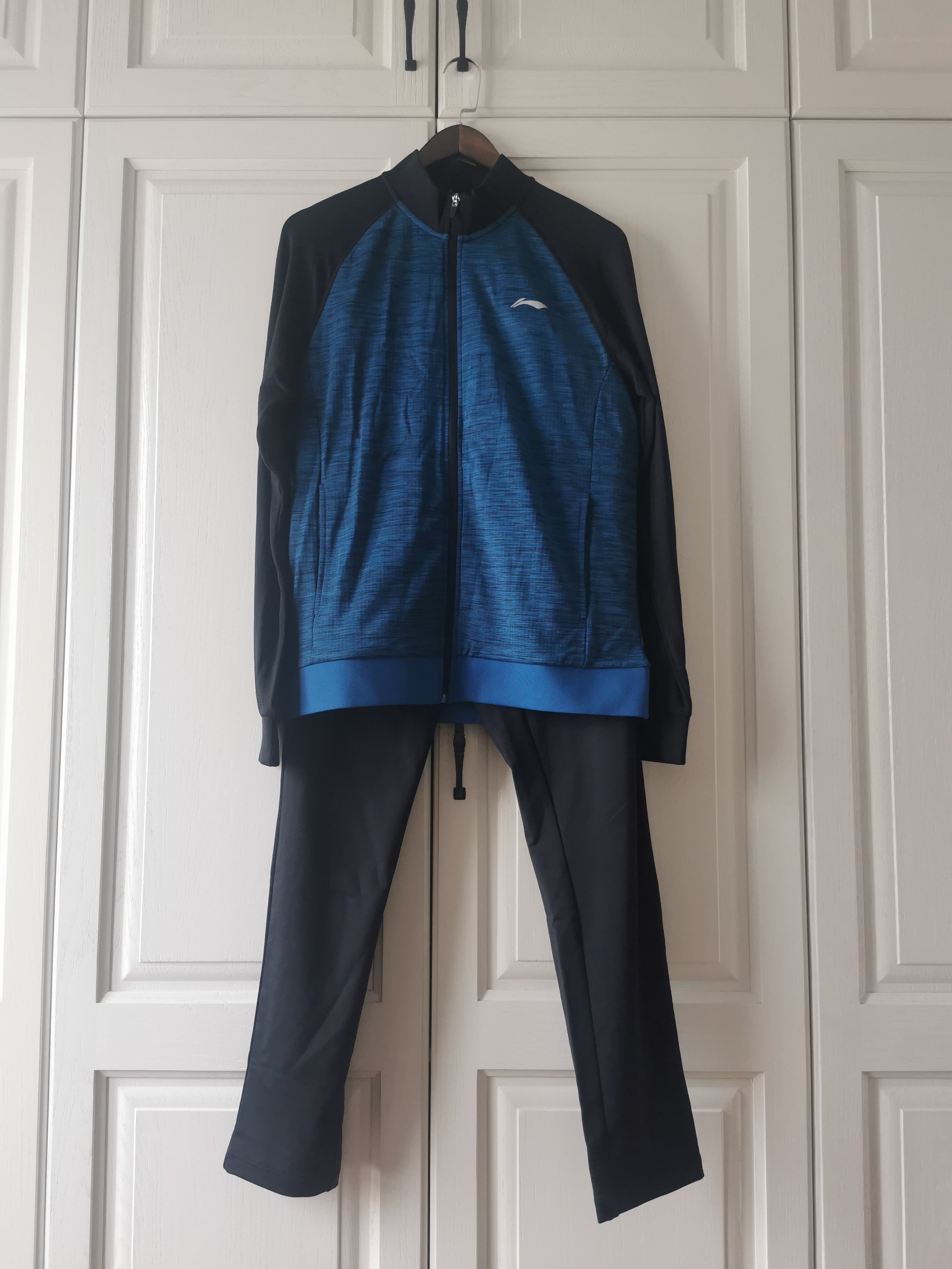 李宁羽毛球服套装立领开衫外套蓝黑色速干保暖春秋初夏运动服套装