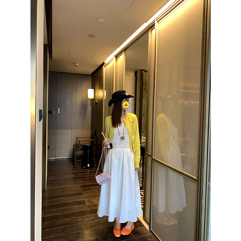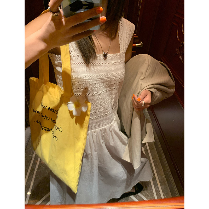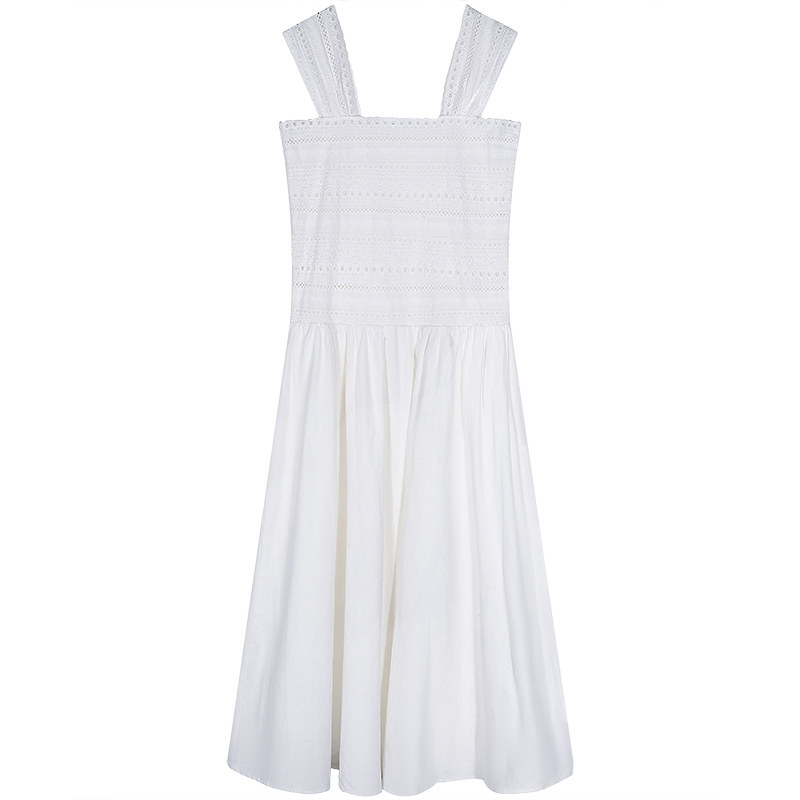 今屿花花白色蕾丝吊带连衣裙女装2026新款春款长裙无袖设计感棉麻