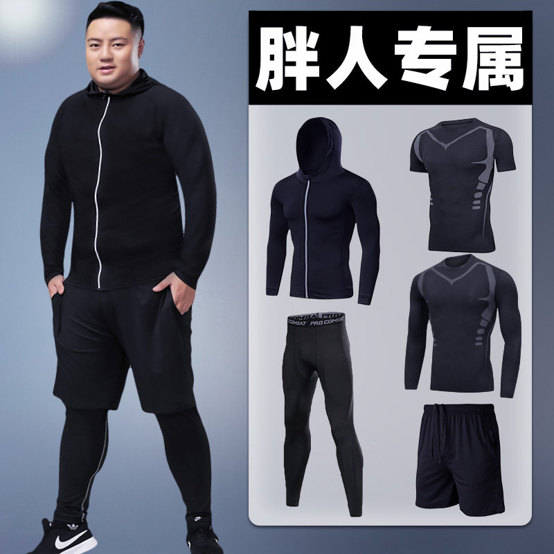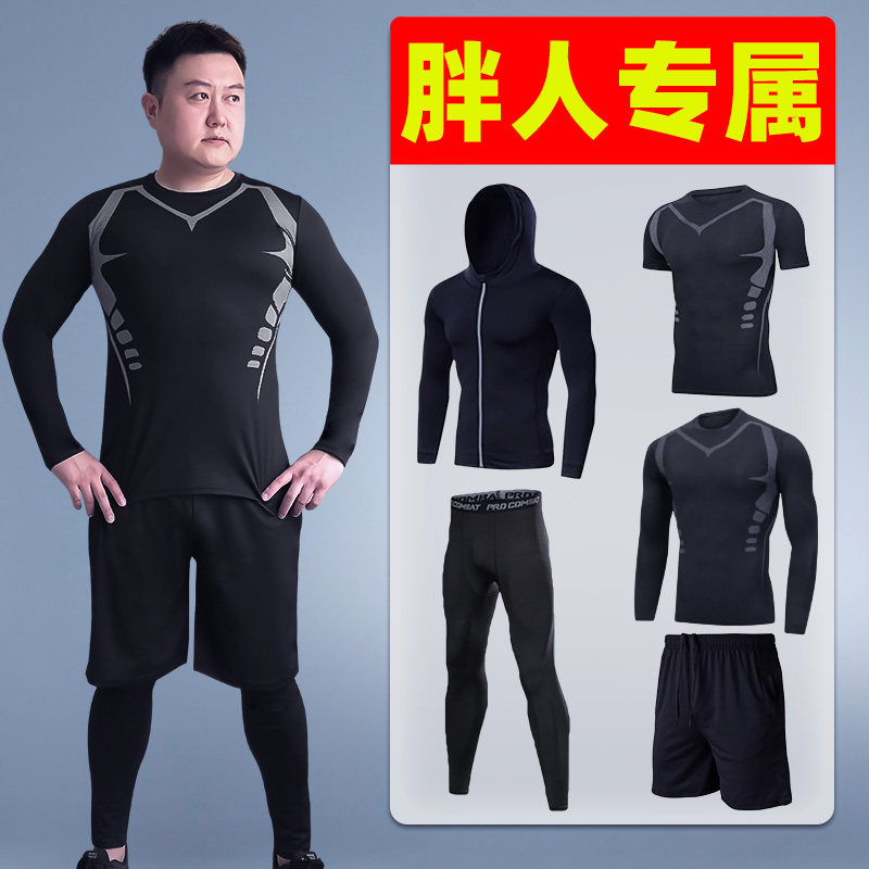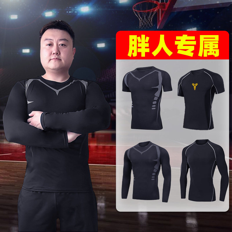 胖人长袖运动套装训练服男士大码300斤打底夏速干透气高弹紧身衣