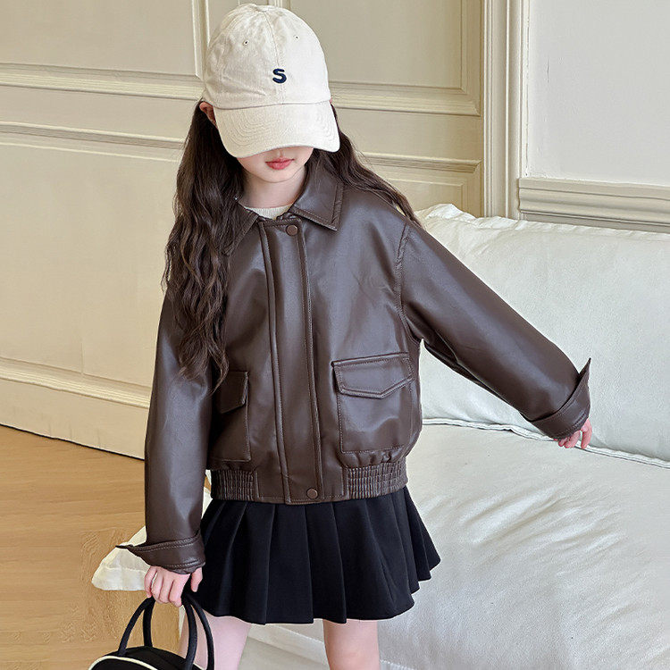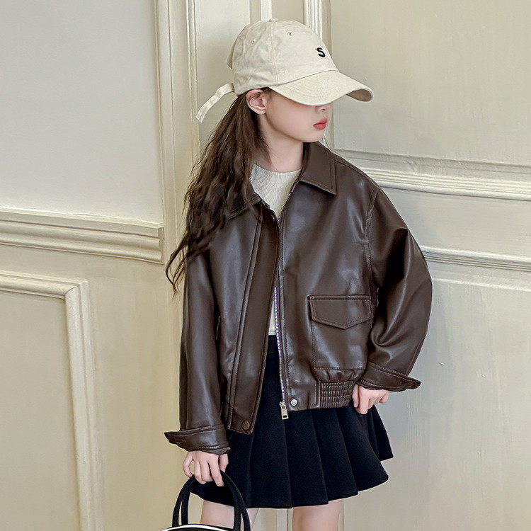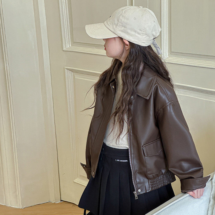 女童皮衣外套春秋款2026新款儿童洋气夹克中大童时髦春装女孩上衣