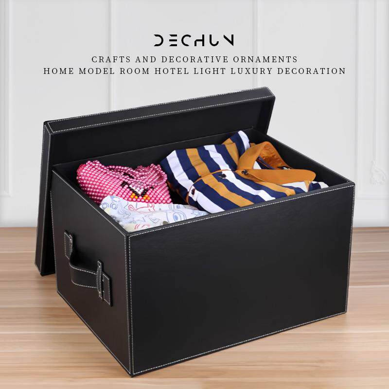 软装皮质收纳箱创意木质皮革有盖收纳摆件家用衣物杂物轻奢整理箱