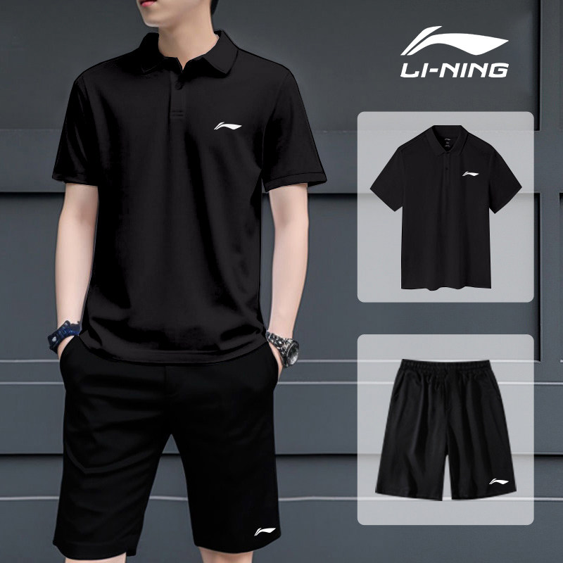 李宁POLO运动服套装男夏季新款青少年T恤速干冰丝短袖短裤两件套