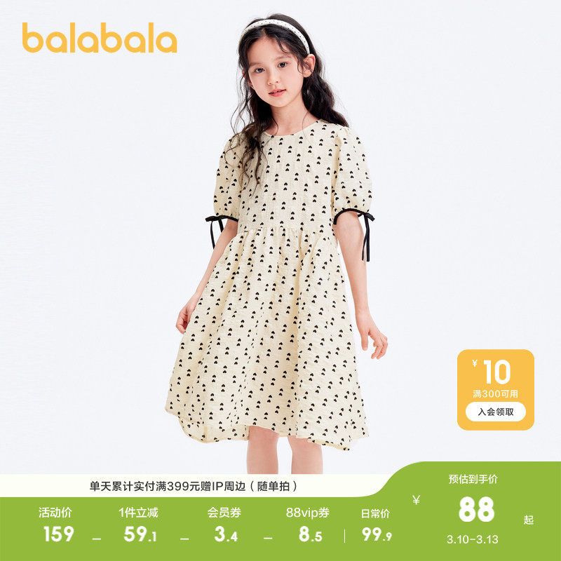 巴拉巴拉童装儿童连衣裙女童春夏装中大童满印甜美长裙薄款甜美潮
