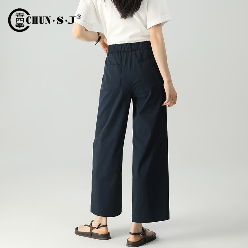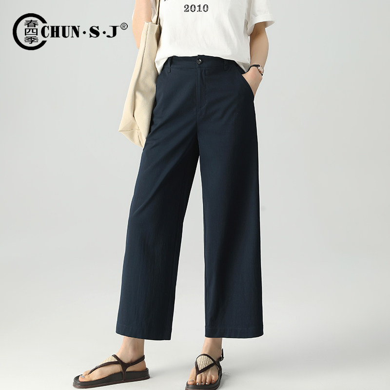 轻薄蚕丝冰丝直筒裤女夏薄款小个子八分裤九分裤子女款阔腿休闲裤