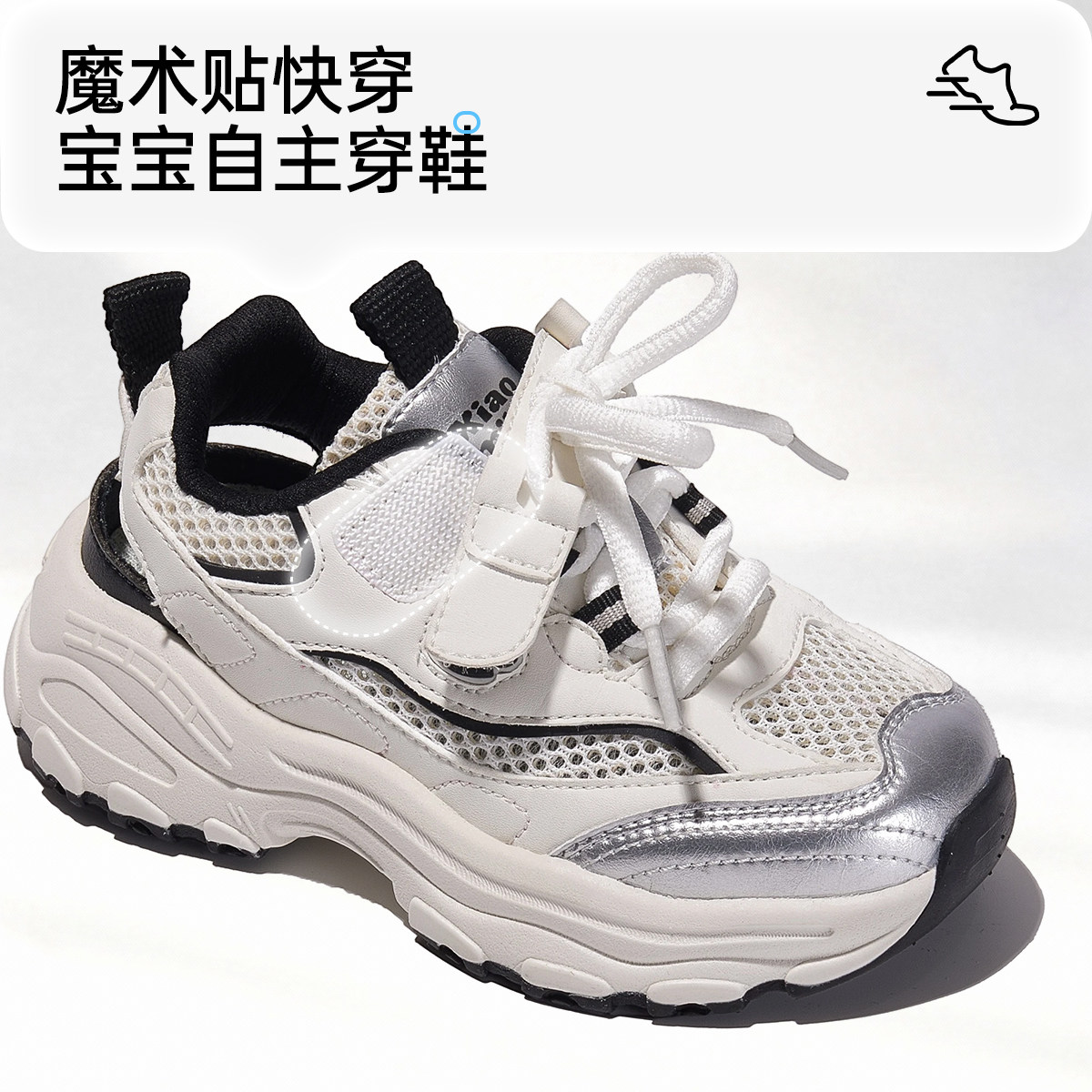 女童鞋运动鞋2026夏季新款休闲老爹鞋儿童软底网面跑步鞋中大童
