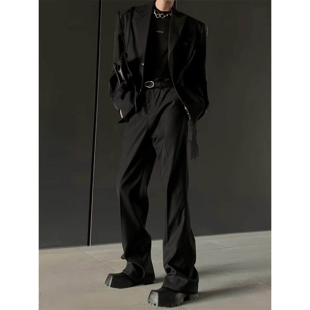 黑色直筒牛仔裤男款夏季薄款加长款ootd美式裤子高腰显瘦微喇男裤