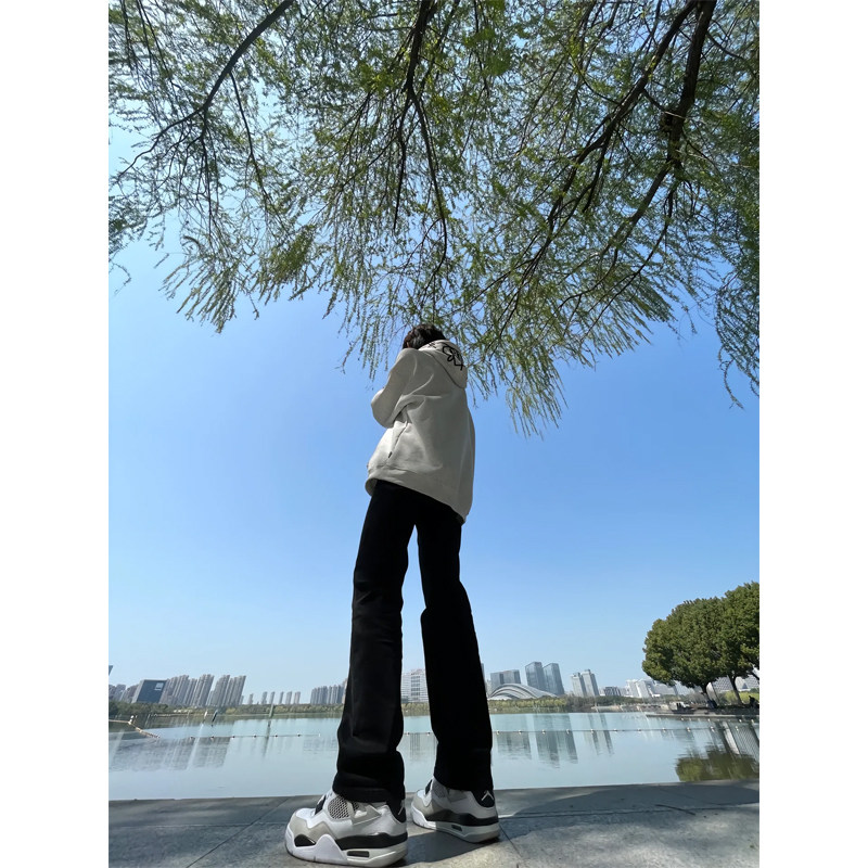 美式薄款微喇牛仔裤男款春夏季黑色弯刀裤子修身窄版直筒阔腿长裤
