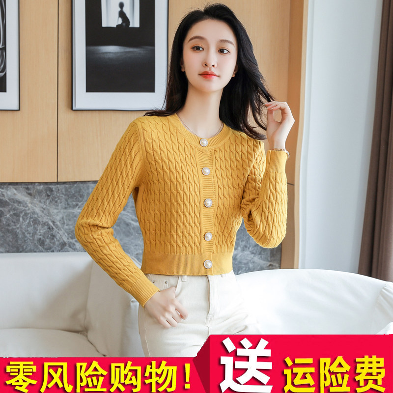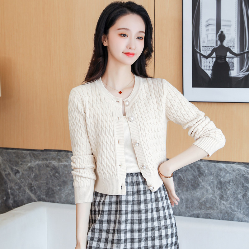 麻花毛衣外套女短款小个子上衣2026春季新款女装高腰外穿针织开衫