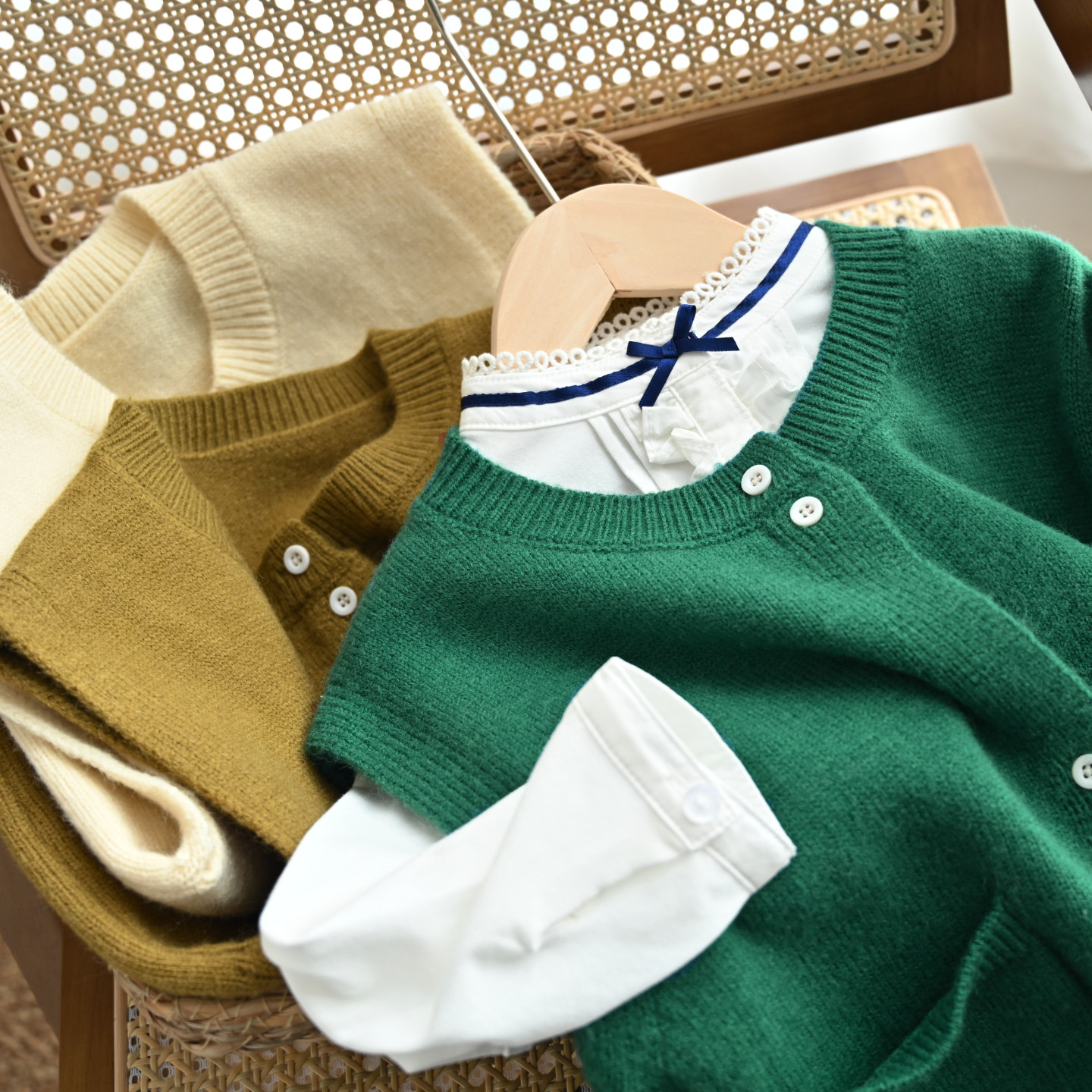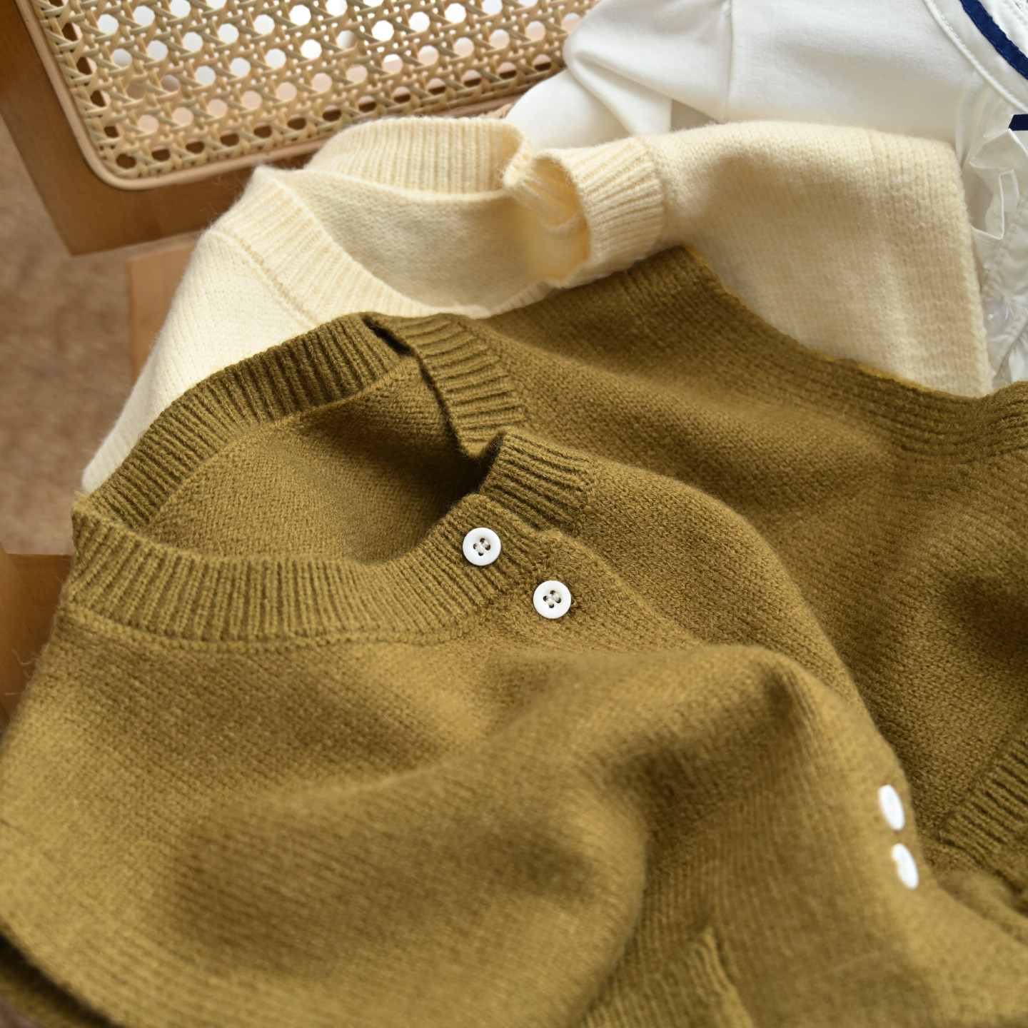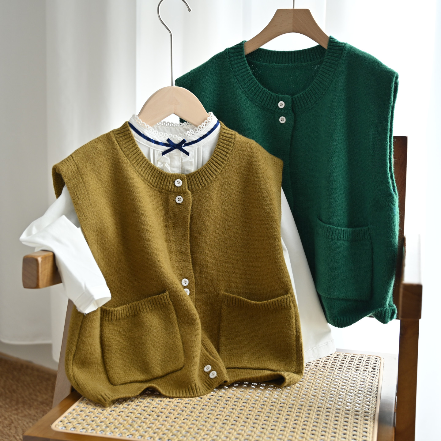 儿童叠穿毛衣马甲 男童女童圆领针织开衫 纯色外套 中大童 秋冬款