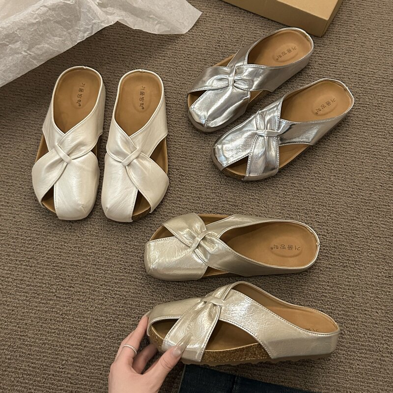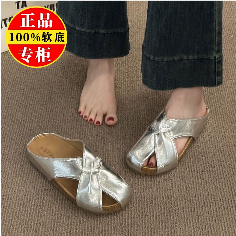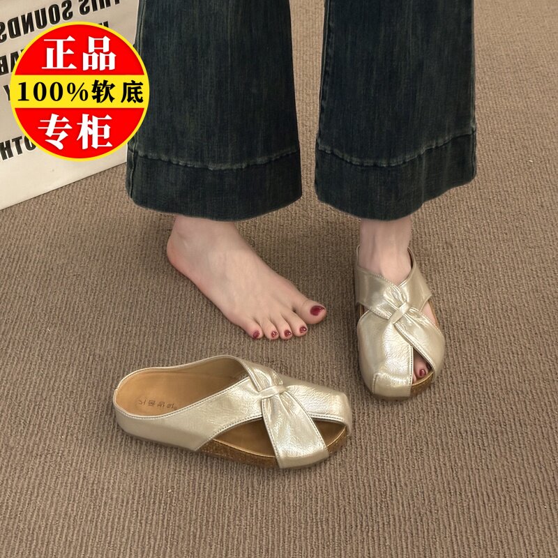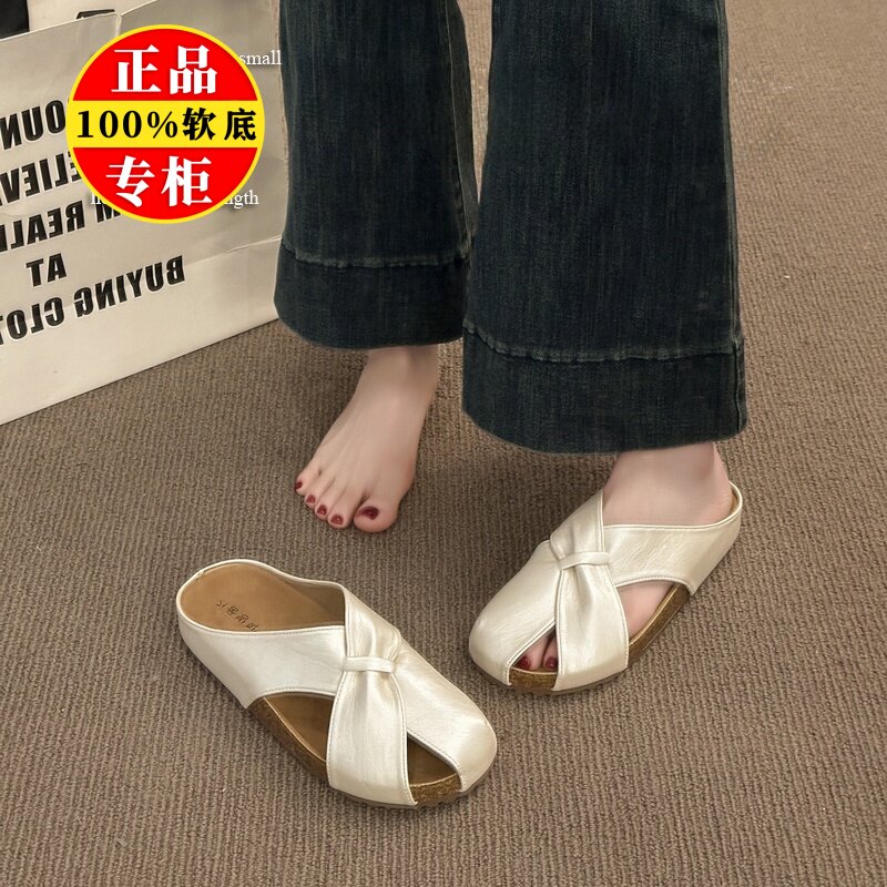 品牌真皮勃肯凉拖鞋女夏2025新款外穿包头半拖鞋厚底不累脚配裙子