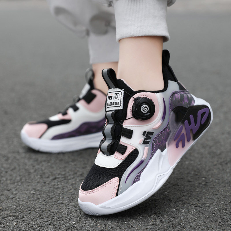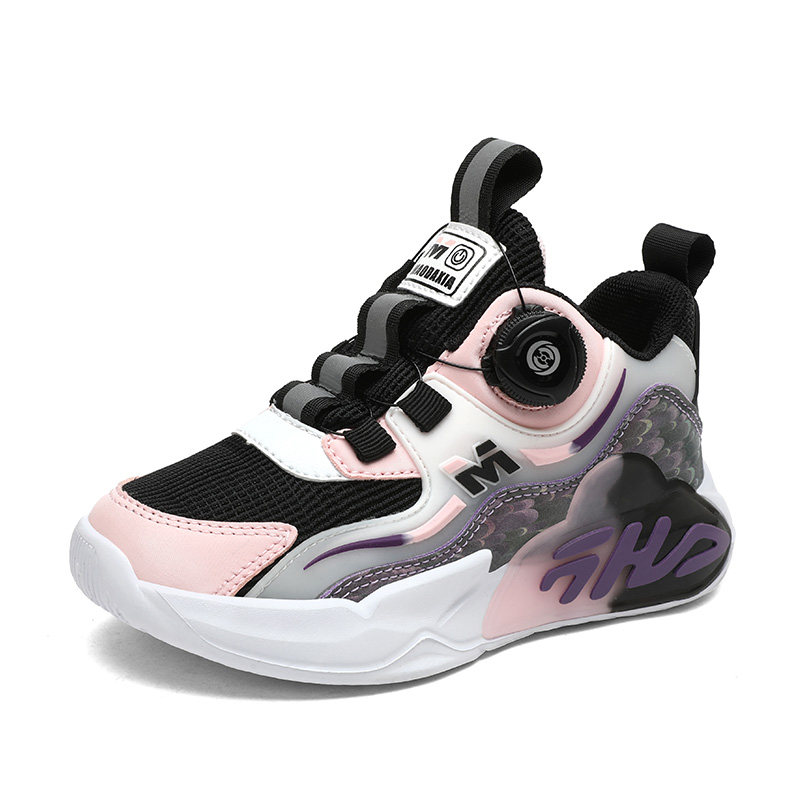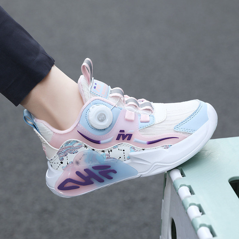 旋转纽扣女鞋夏季透气薄款女孩运动鞋单网轻便女童跑步鞋初中学生