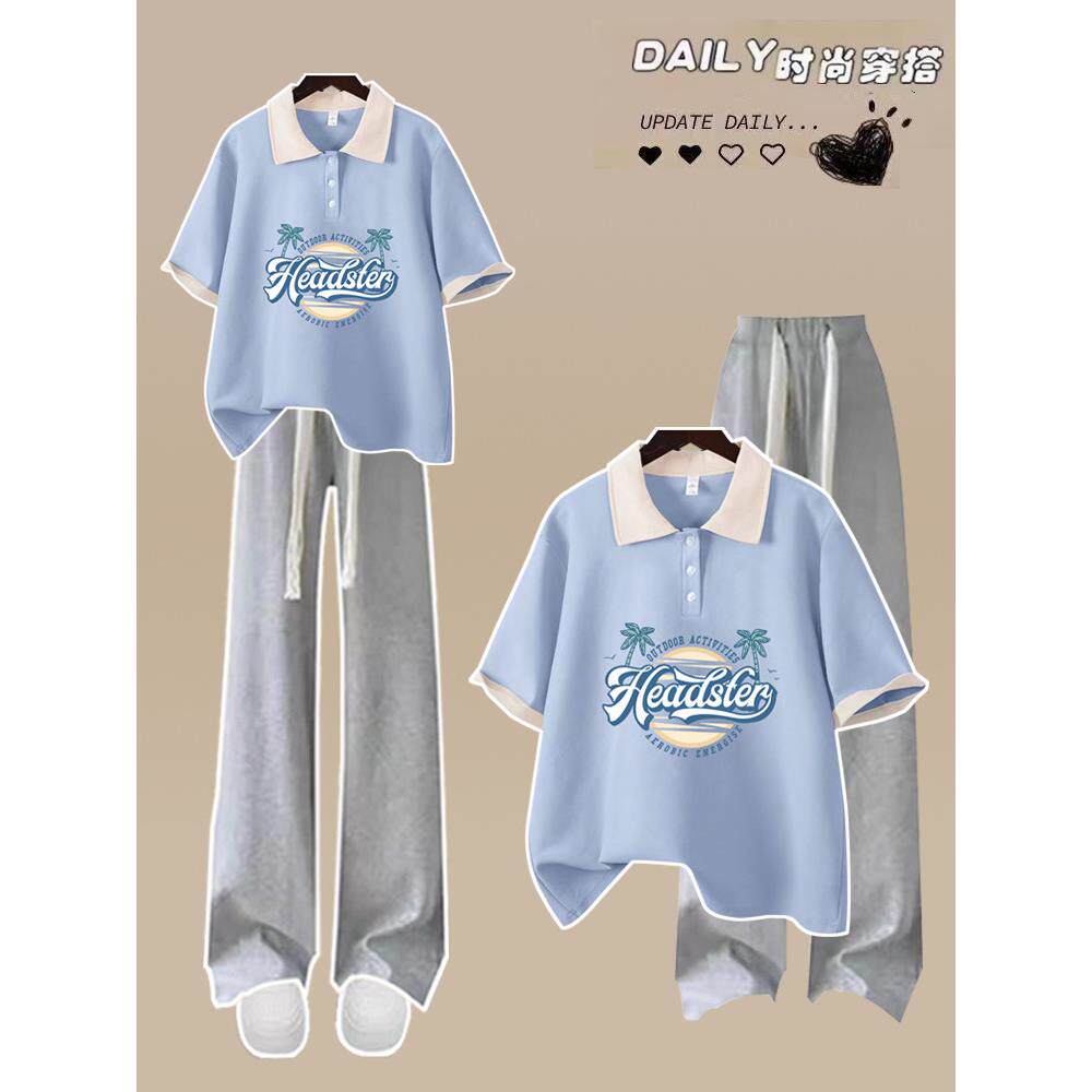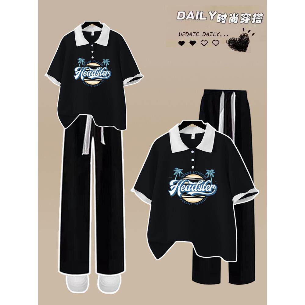 17夏季少女装13初中学生14阔腿裤套装16岁宽松短袖学院风两件套潮