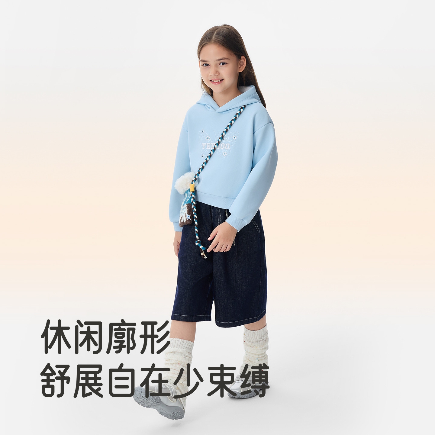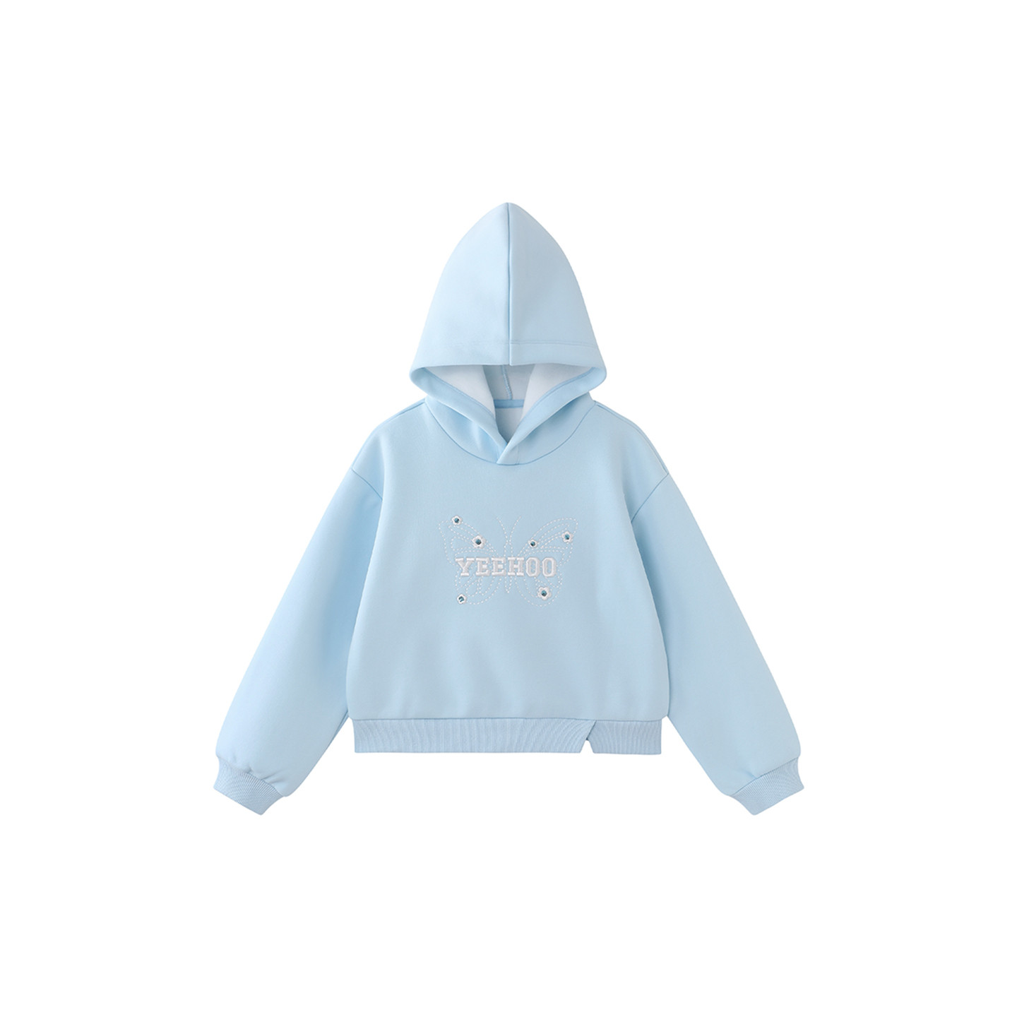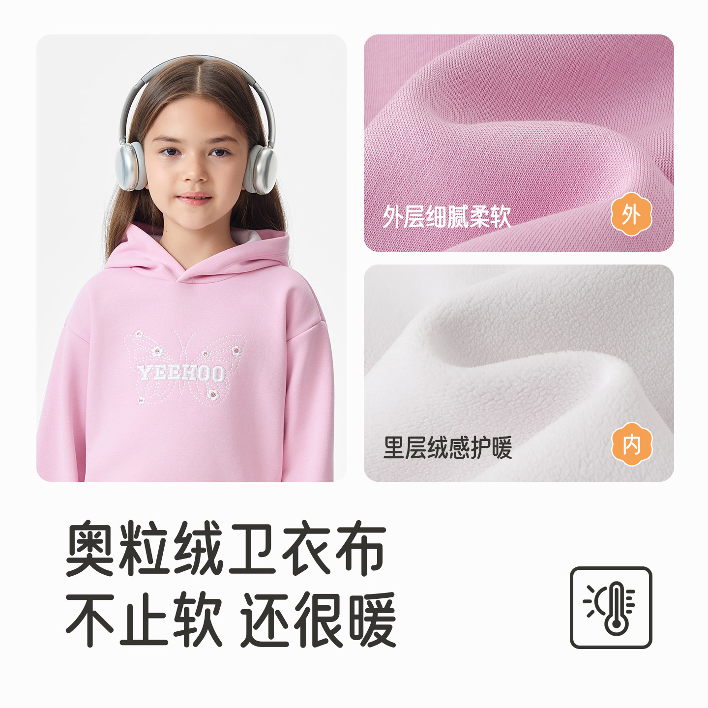 英氏女童卫衣连帽女宝刺绣纯色加绒加厚短款春季春秋保暖运动外套