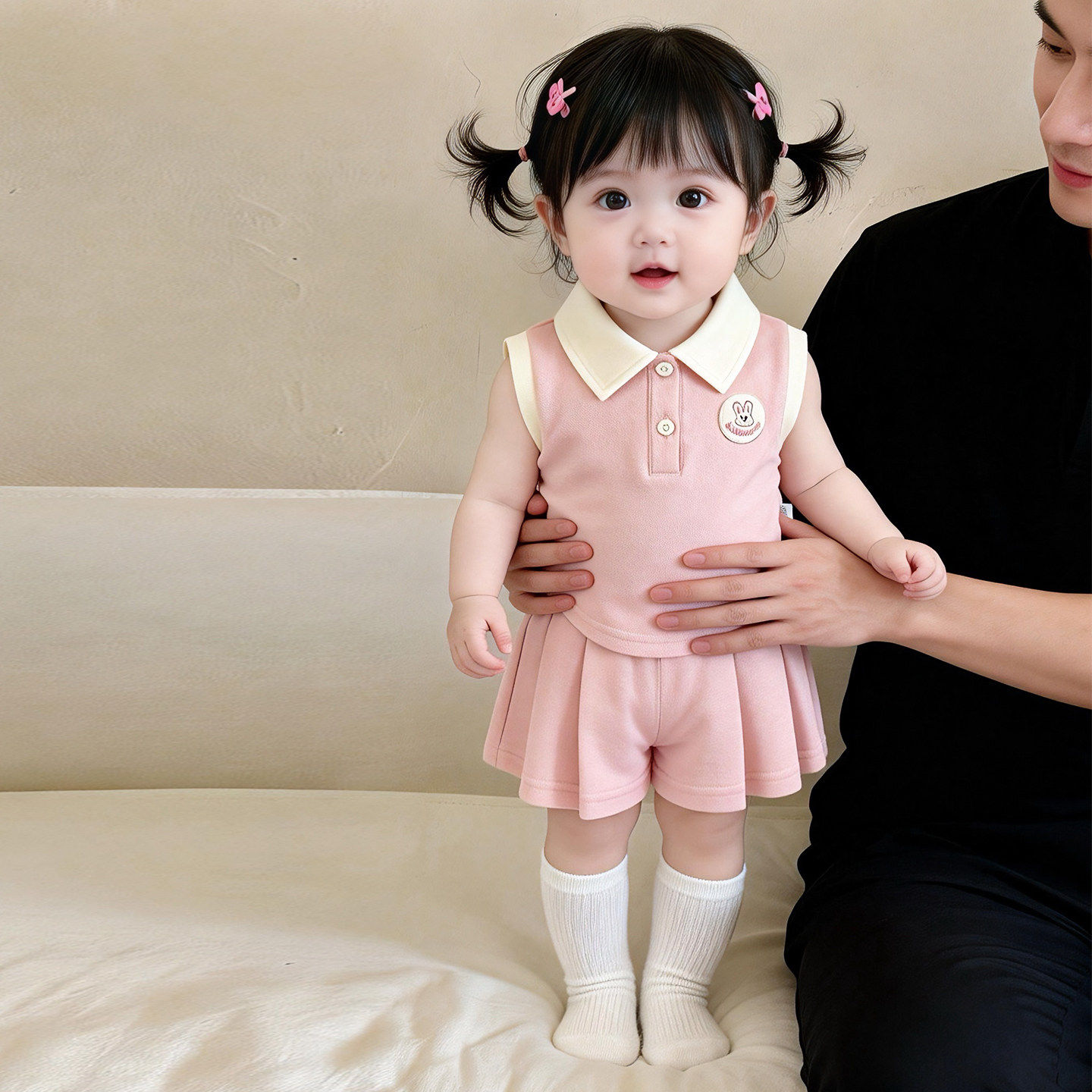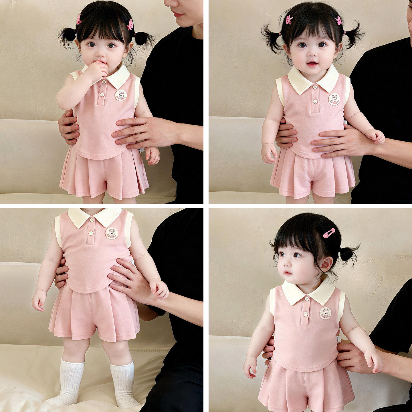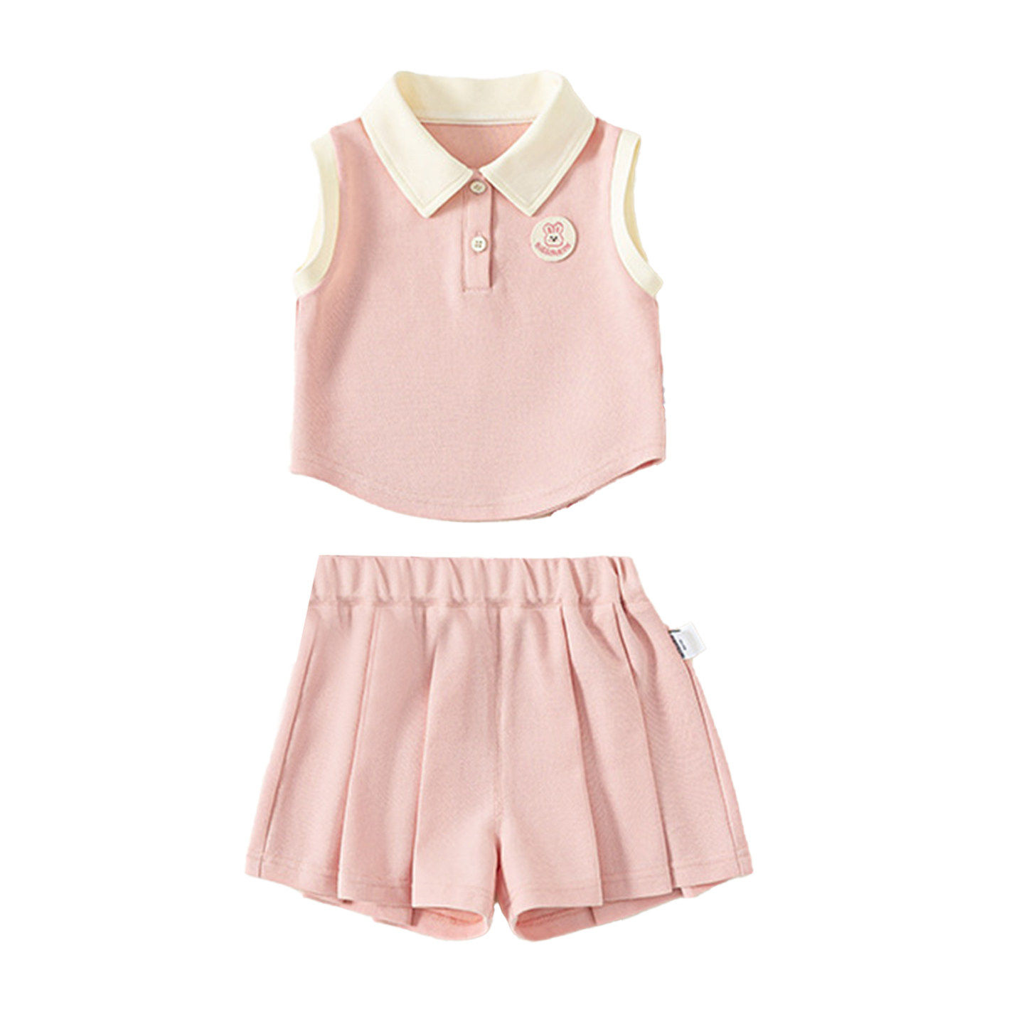 小月龄女宝宝夏季薄款无袖上衣百褶裙裤套装2026新款女童夏天衣服