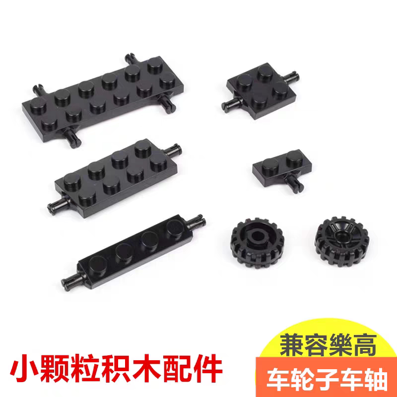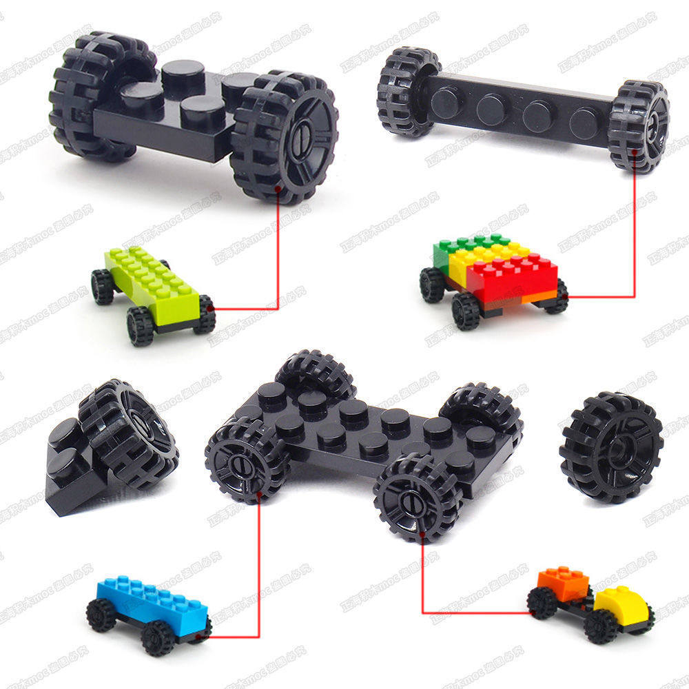 小颗粒散装积木兼容乐高汽车车轮车底座双轴多规格轮子配件玩具
