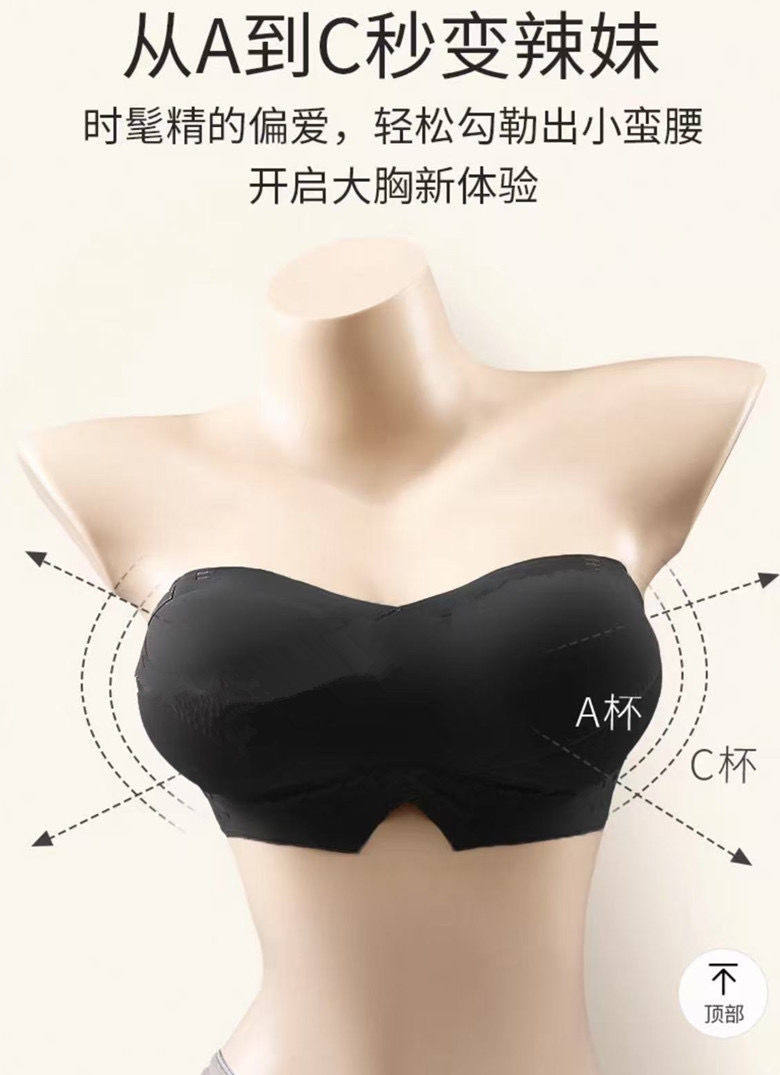 加厚小胸聚拢8cm性感隐形美背无肩带内衣女防滑抹胸小胸显大文胸