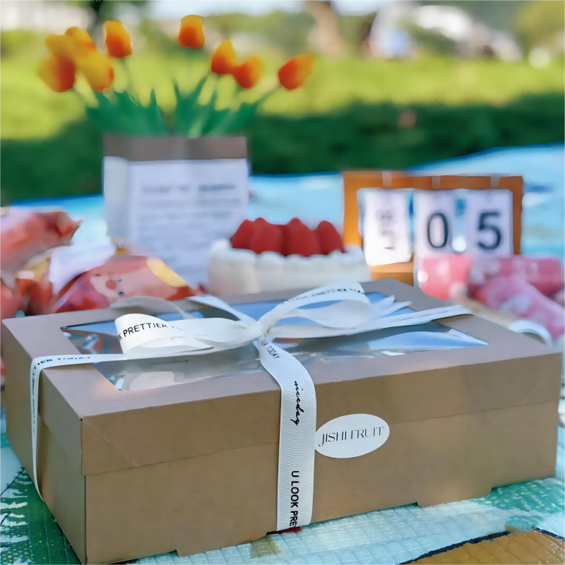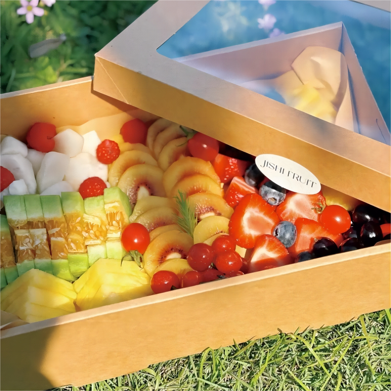 网红水果捞包装盒果切盒野餐盒子户外露营一次性牛皮纸打包盒大号