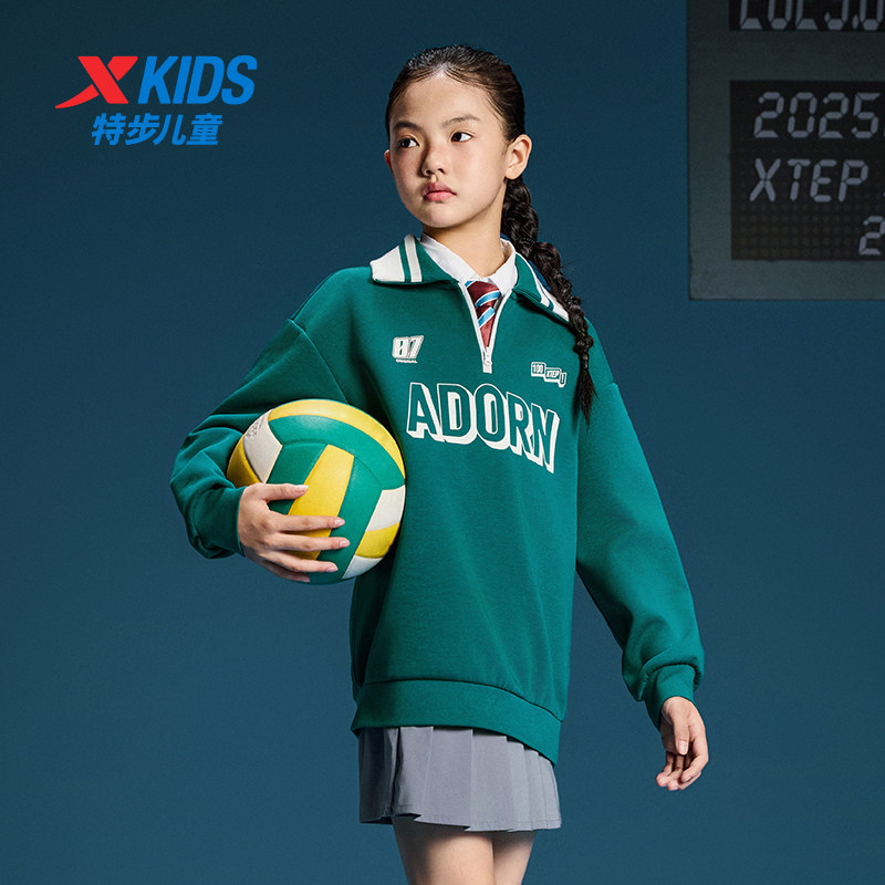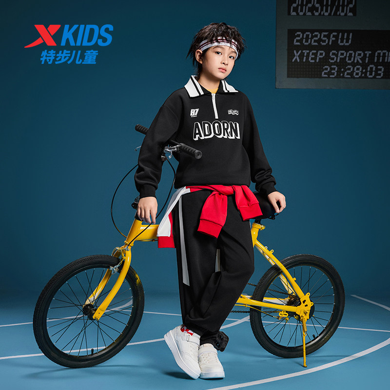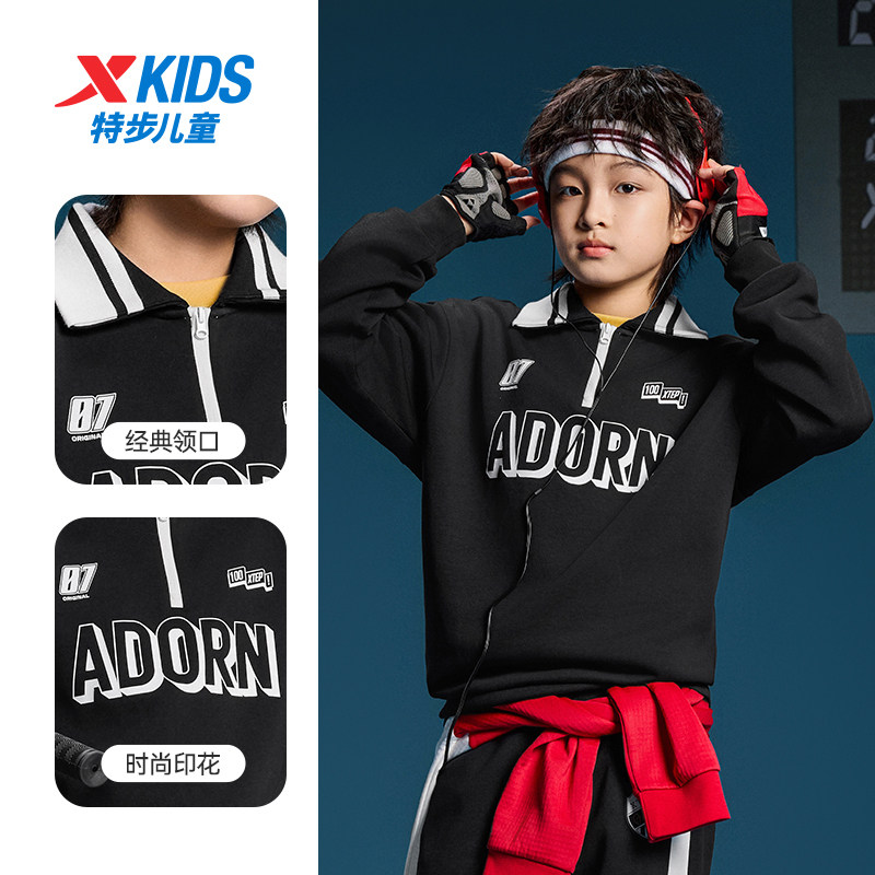 特步童装儿童套头卫衣男童秋冬季新款正品休闲保暖长T中大童上衣