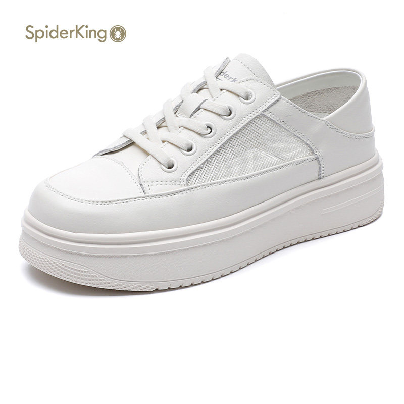 蜘蛛王2025夏季新款小白鞋女百搭真皮休闲平底软皮舒适透气女鞋潮