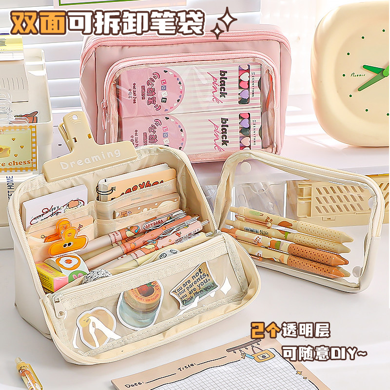 ~可折叠笔袋高颜值ins风文具盒女孩款2025新款铅笔盒初中生痛包女生大容量透明小众不撞立式蓝色紫色可拆卸