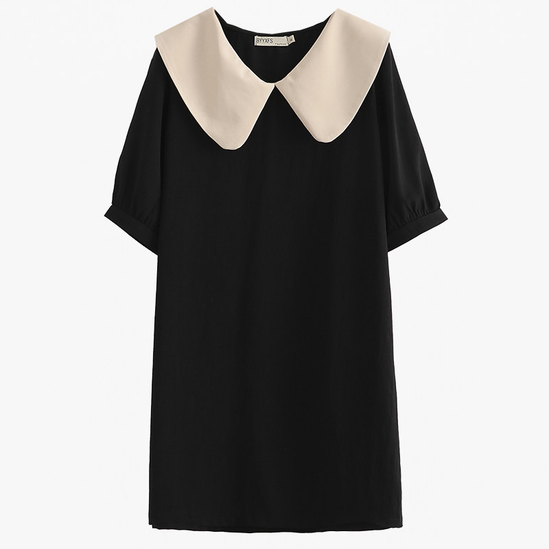 连衣裙大码胖mm显瘦夏天2023新款减龄拼色娃娃领宽松遮肉短袖裙子
