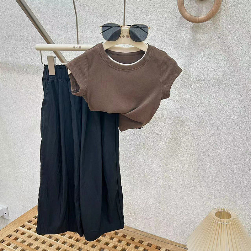 女童夏款炸街裤子薄款防蚊裤儿童洋气阔腿裤套装女大童夏装两件套