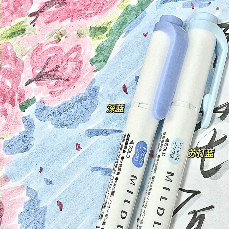 新款新色日本斑马官网ZEBRA荧光色笔WKT7mildliner淡色系双头手账标记号笔浅彩色学生用划重点