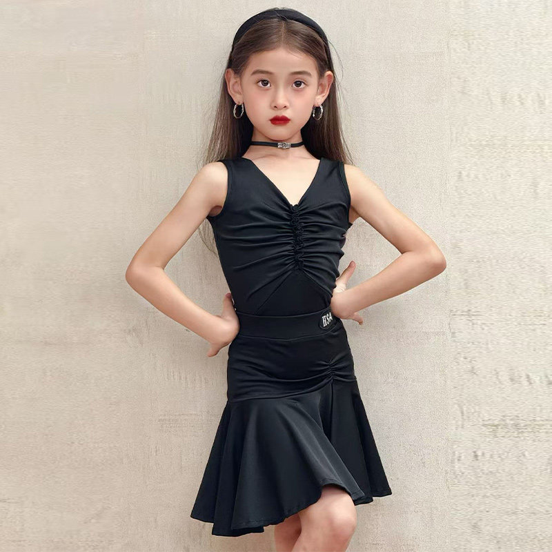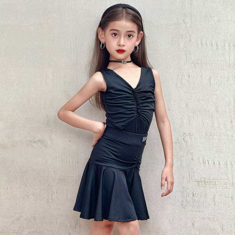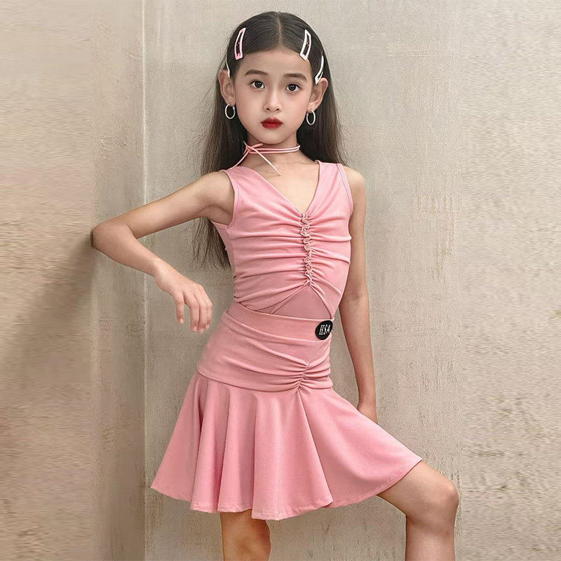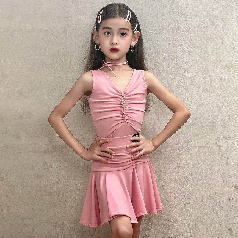2026新款女童拉丁舞练功服少儿舞蹈裙比赛训练服大摆裙套装演出服