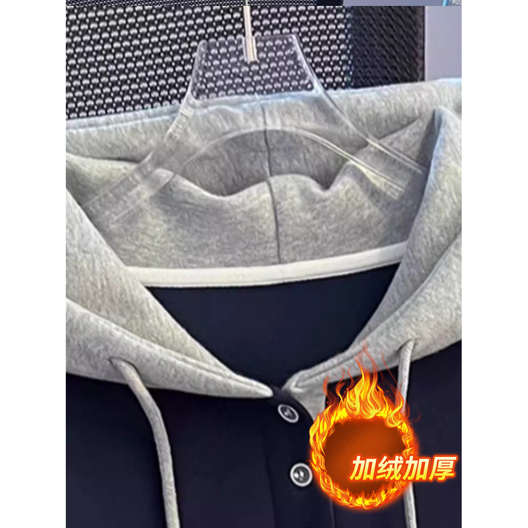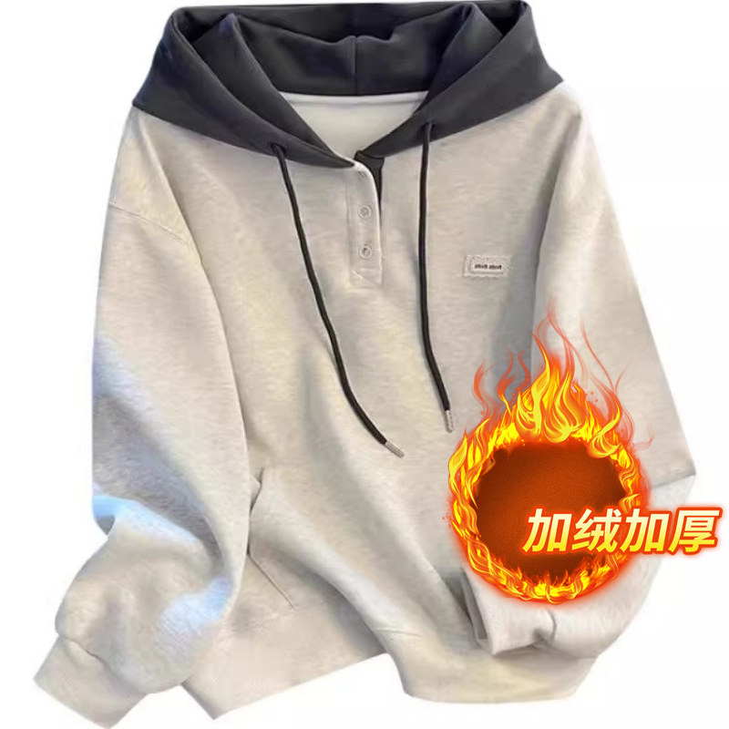 加绒加厚卫衣少女孩秋冬季拼色连帽上衣初中学生外套显瘦百搭上衣