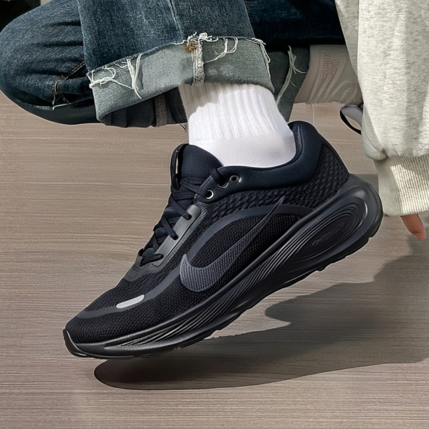 Nike耐克官方正品缓震透气跑步鞋女鞋春季新款厚底大童黑色运动鞋