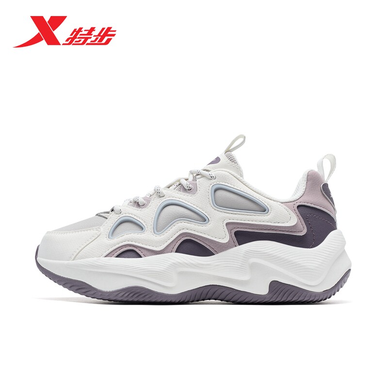 特步女鞋正品官网闪电女款运动鞋板鞋新款皮面复古轻便休闲老爹鞋