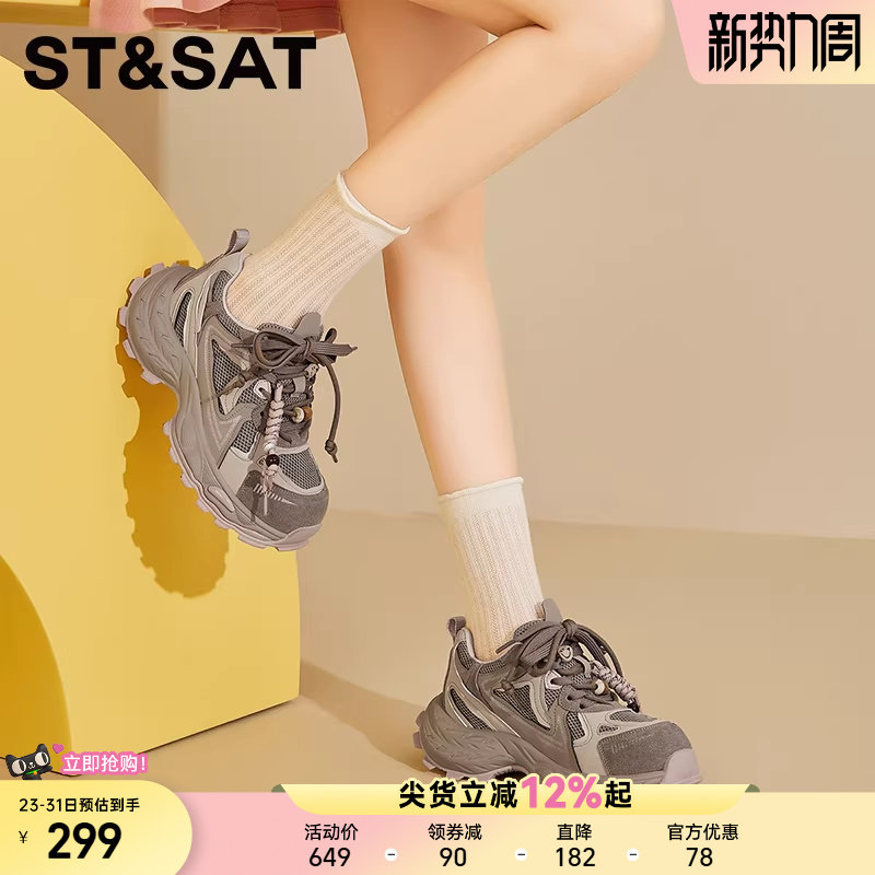 星期六厚底老爹鞋女款2025新款女鞋夏季透气网面鞋子女薄款运动鞋