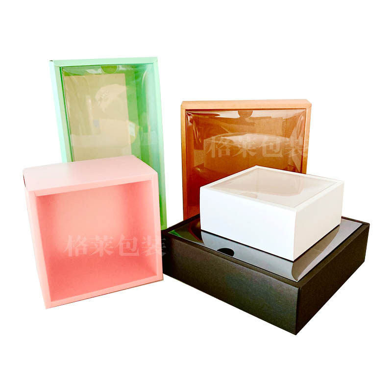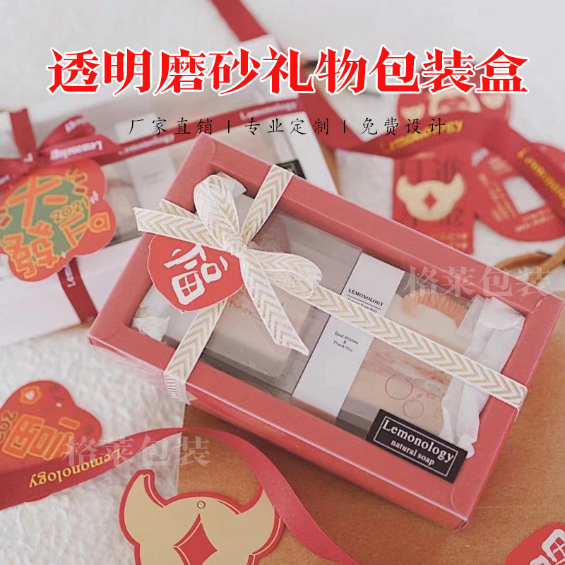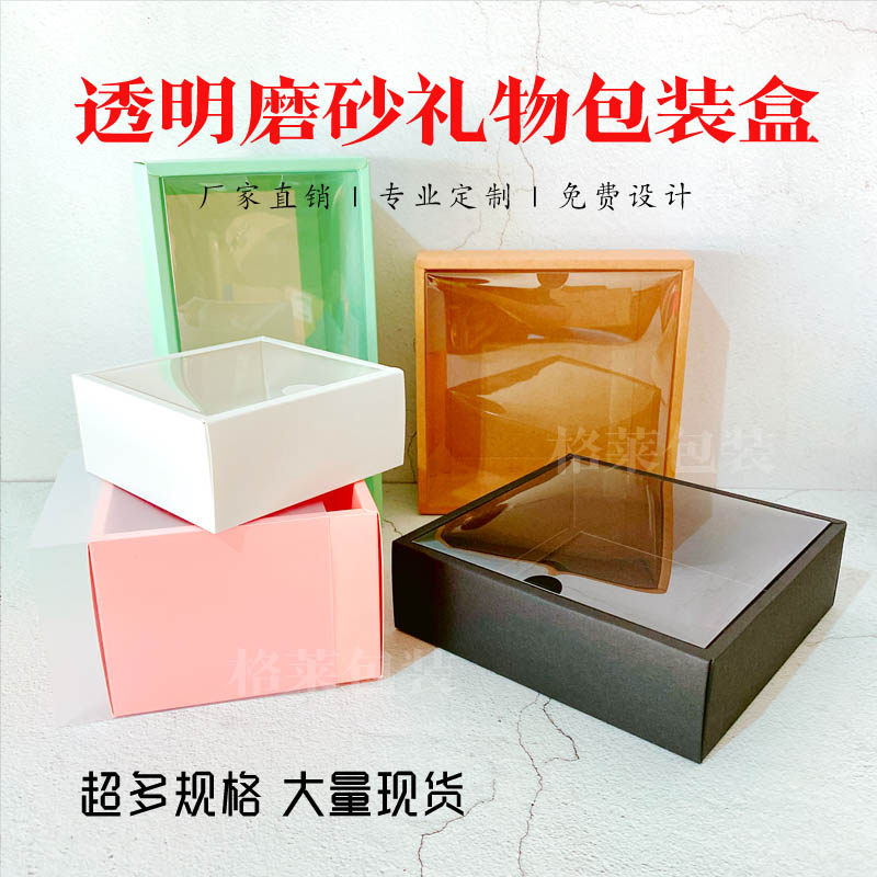 现货牛皮纸盒茶叶长方形礼盒PVC透明包装盒天地盖磨砂抽屉盒定制