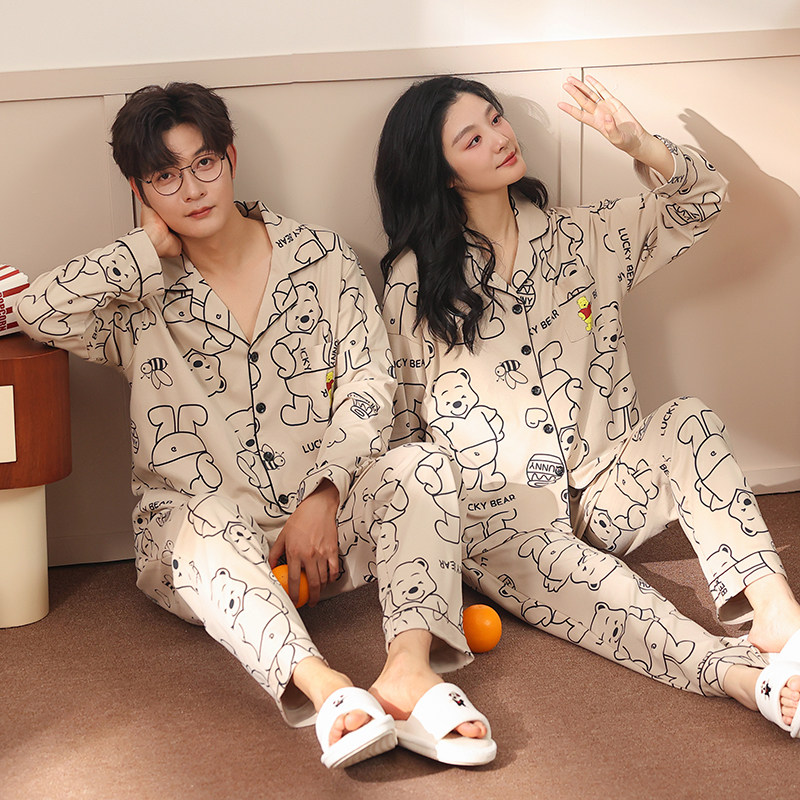 纯棉布料100全棉情侣睡衣秋冬季长袖2026新款秋冬款加厚家居服