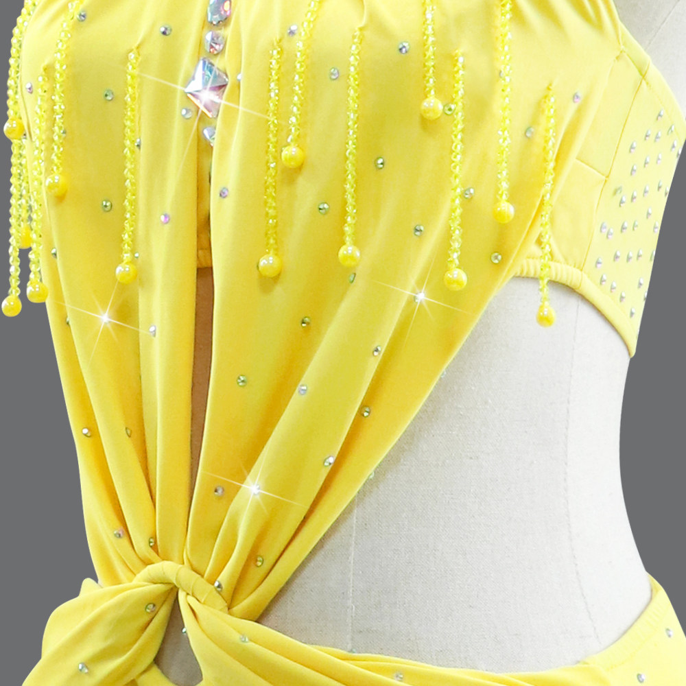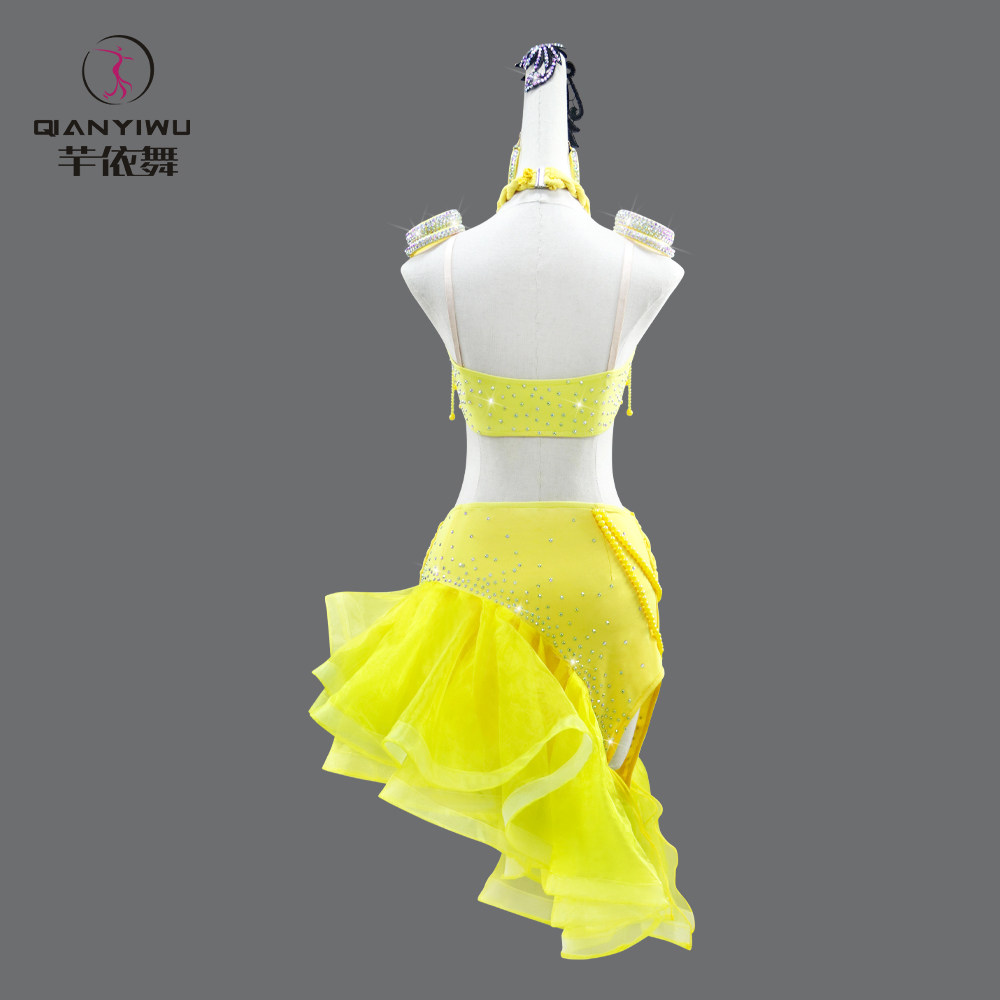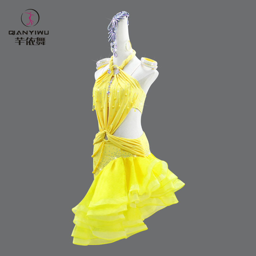2026新款黄色拉丁舞比赛演出服成人专业性感花服连衣裙艺考级定制