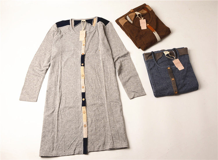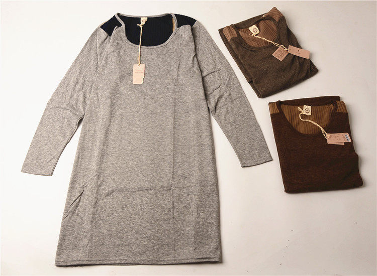 外贸春秋款 女士针织棉空气网眼拼接长袖连衣裙睡裙家居裙中长款