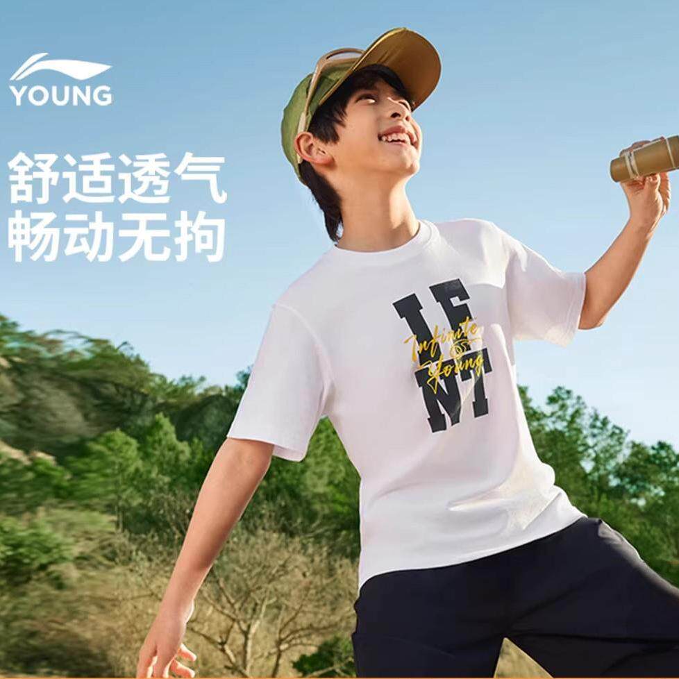 李宁童装短袖T恤男童2026夏季新款篮球宽松透气舒适纯棉运动上衣