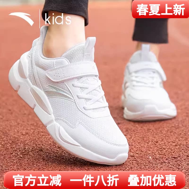 安踏童鞋男童小白鞋春夏网面透气儿童白色运动鞋女童小学生跑步鞋