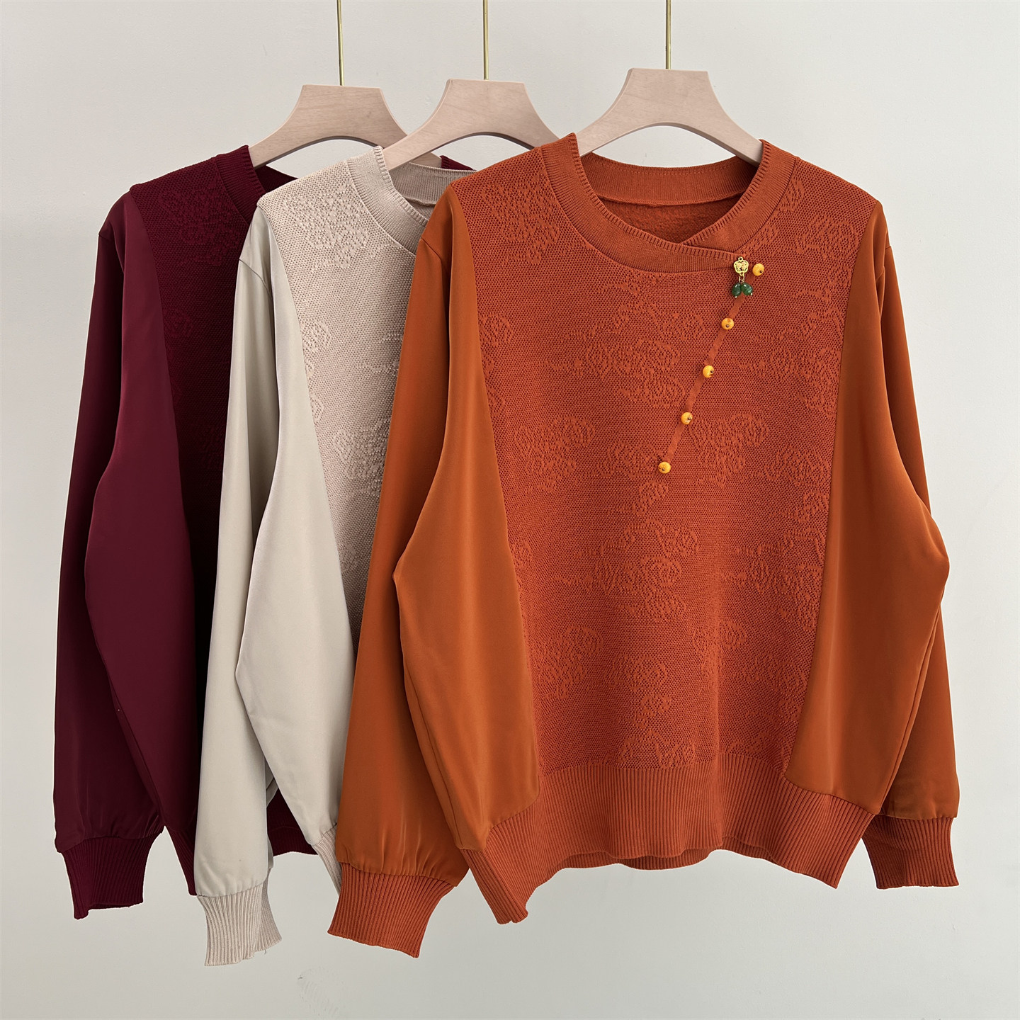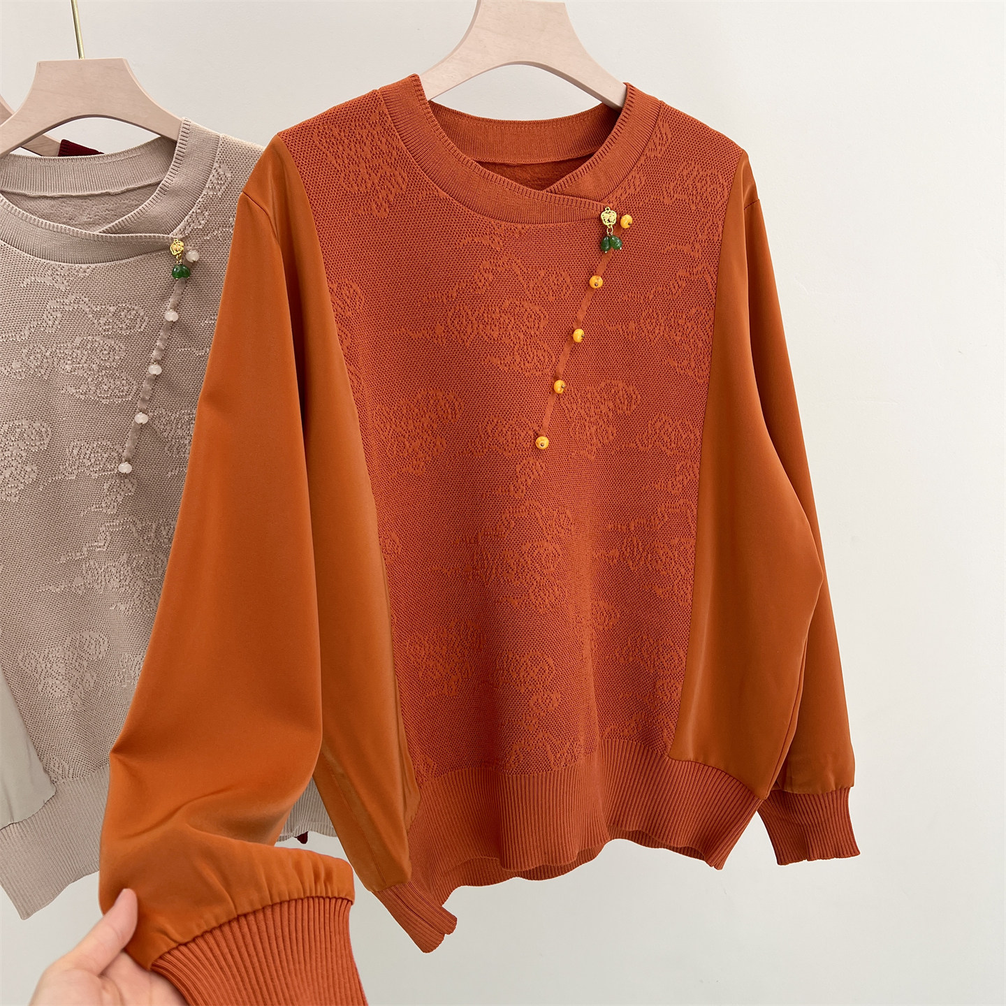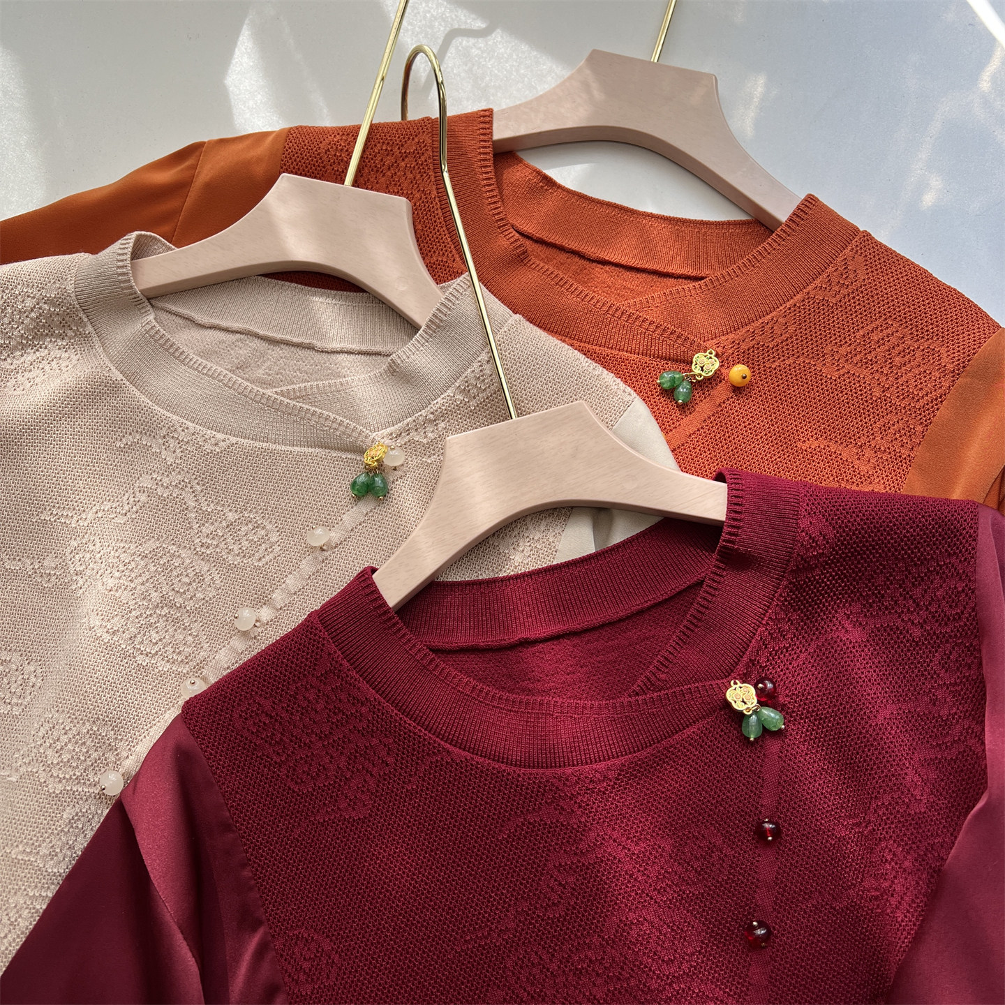 中式国风妈妈春装薄款针织上衣服2026新款中老年女装早春长袖T恤