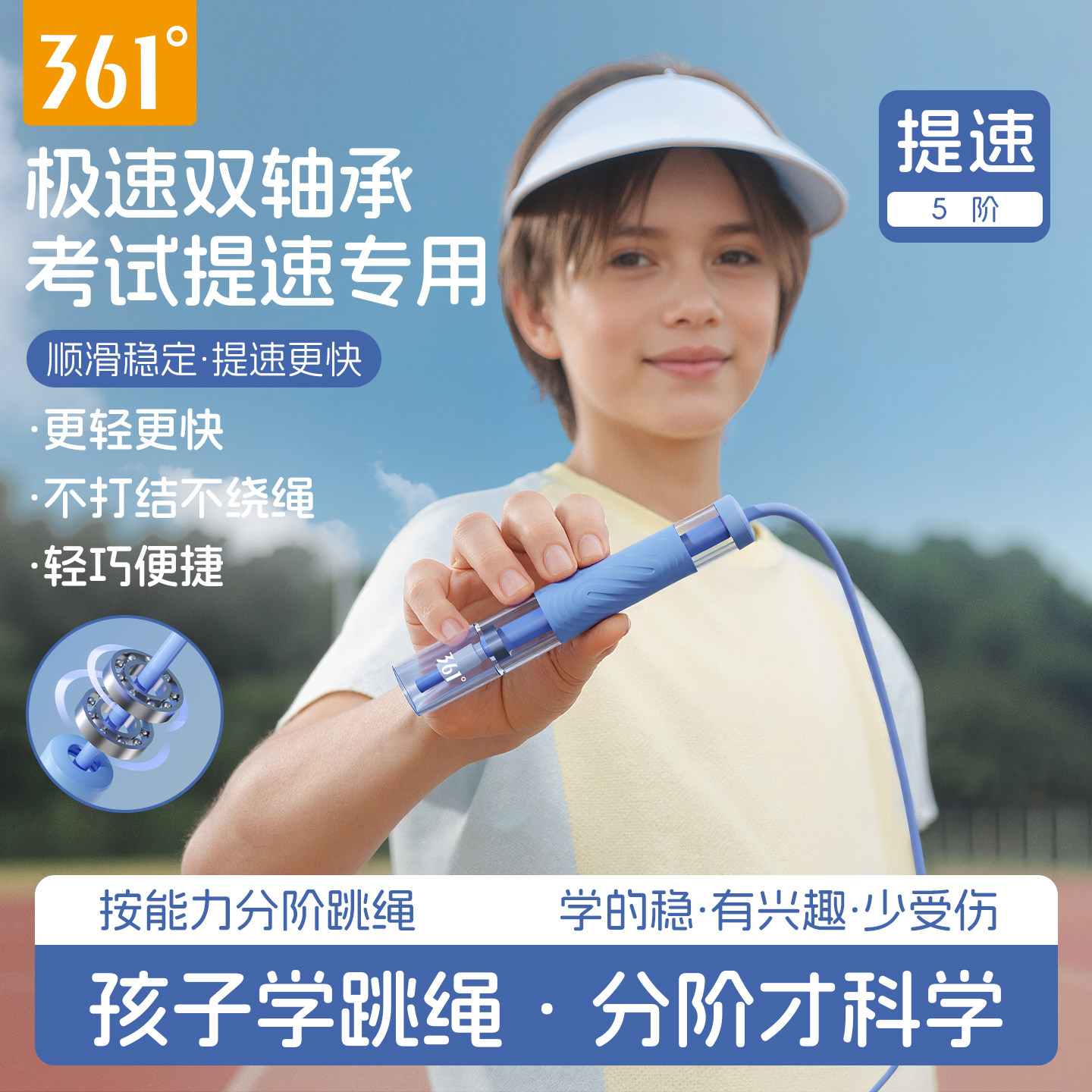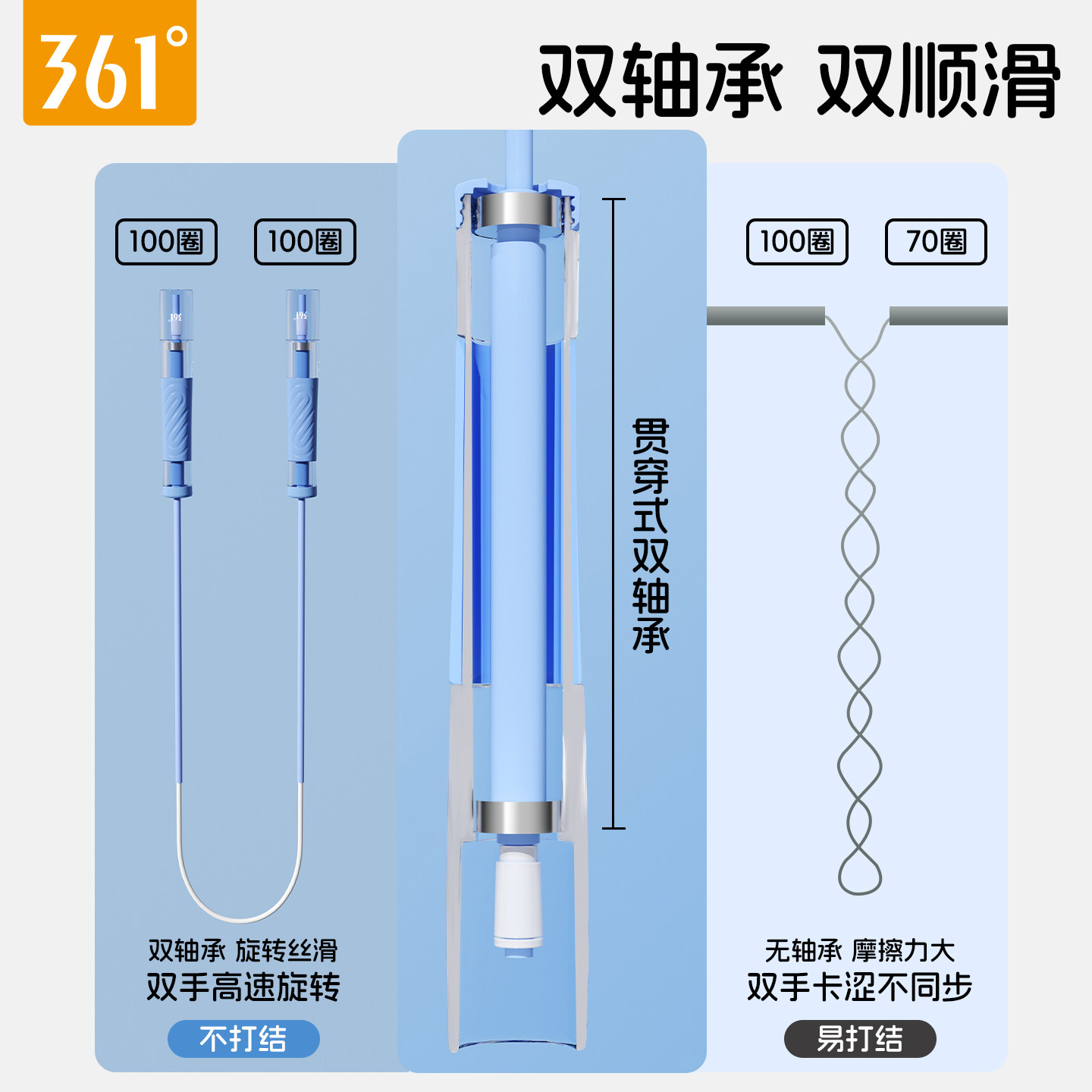 361跳绳儿童小学生专用竞速初中考试中考专业不打结双轴分段长绳