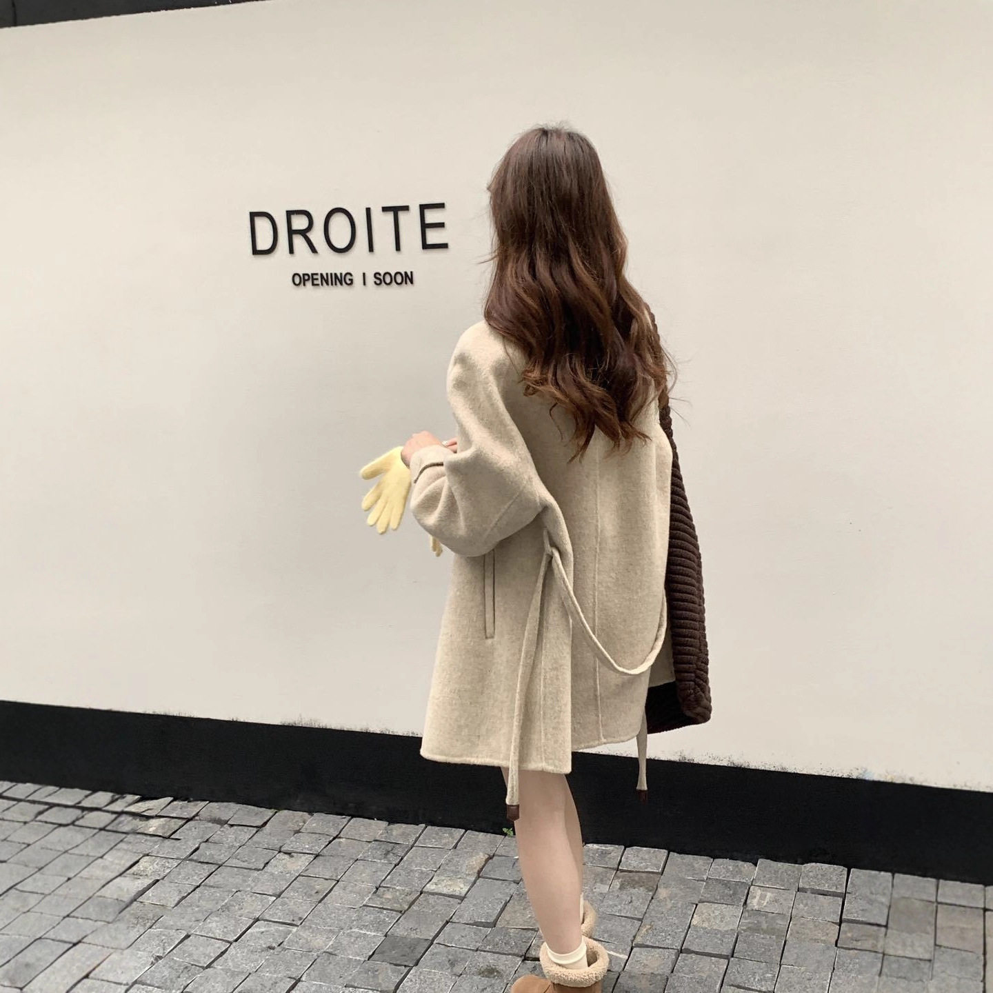 2025秋冬中长款双面毛毛呢外套女名媛立领小个子短款呢子大衣现货