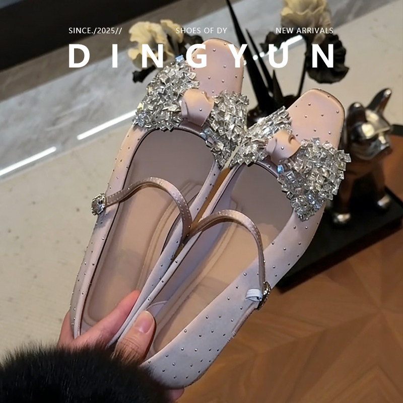 羊皮版dingyun丁允内增高单鞋水钻蝴蝶结浅口方头配裙子女鞋春夏