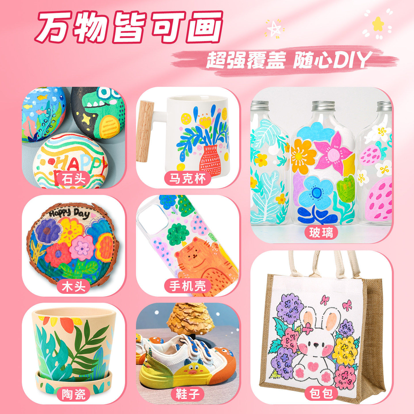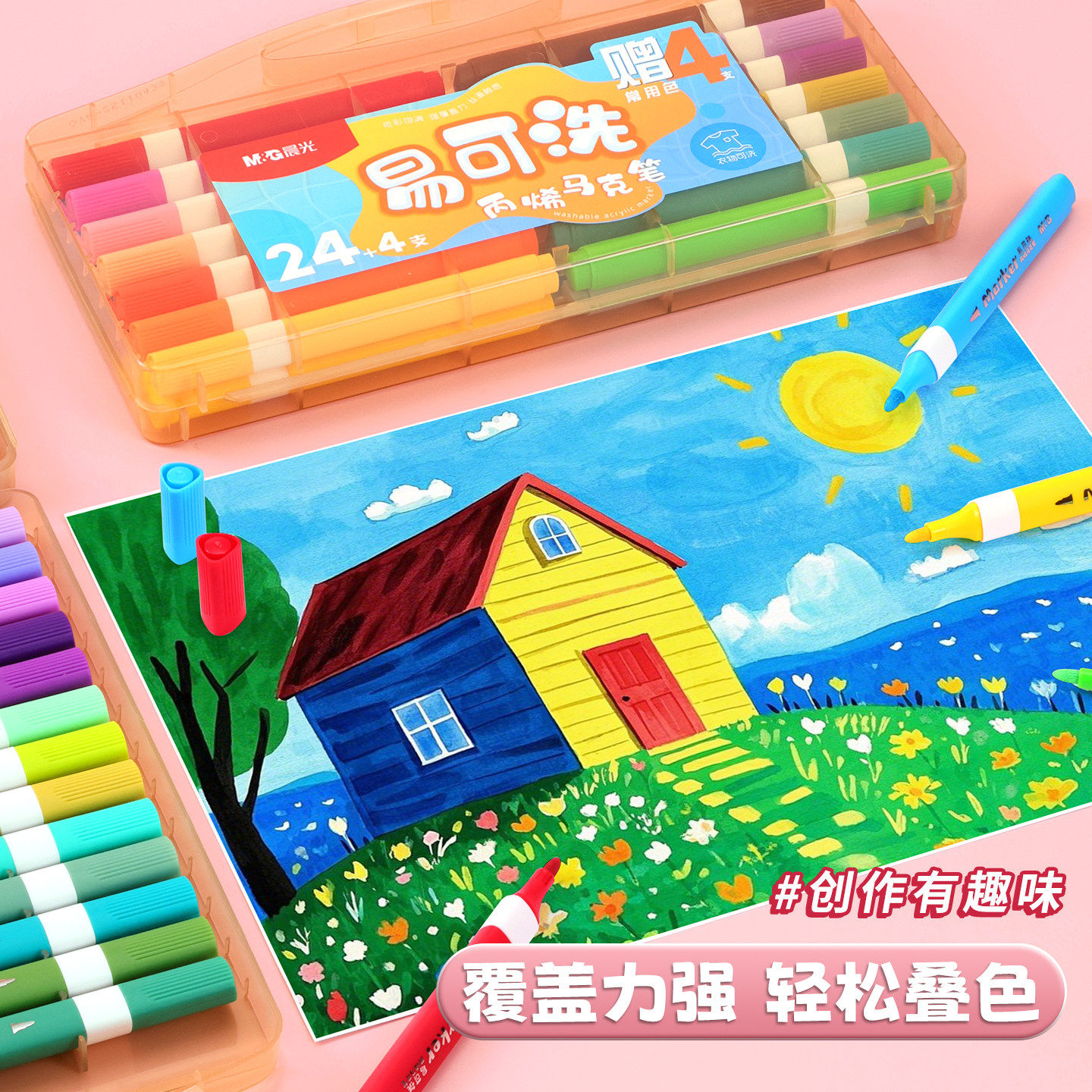 晨光丙烯马克笔易可洗不透色可叠色小学生专用儿童美术DIY彩色笔芯水彩笔硬软头幼儿园涂鸦防水直液式丙烯笔