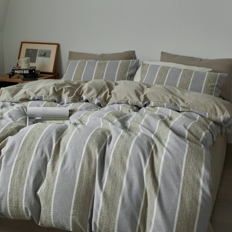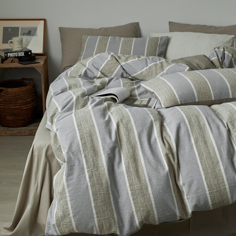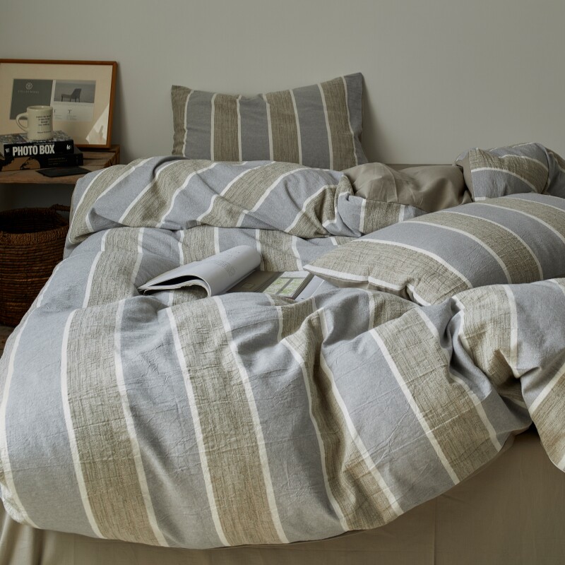 侘寂简约风全棉水洗棉学生宿舍单人床单三件套四季纯棉四件套男生