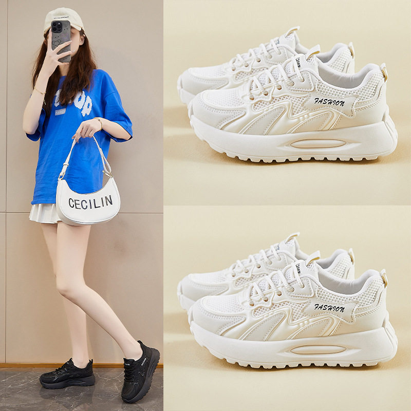 厚底女鞋运动鞋女款2025新款夏季薄款透气网面鞋子爆款女士老爹鞋