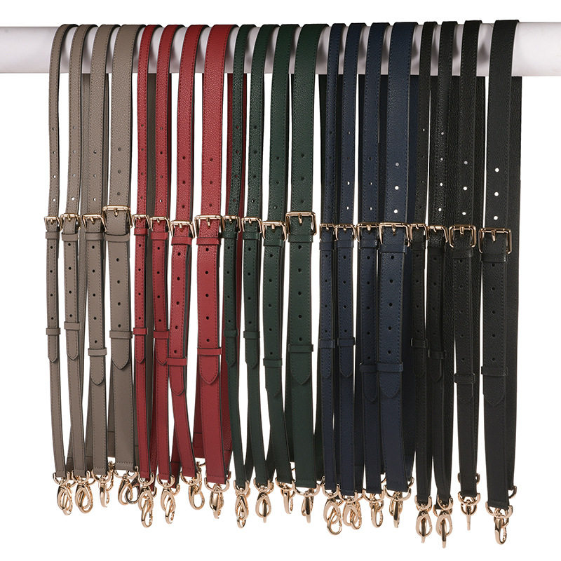 1.2-2.5可调节细带子头层荔枝纹斜挎带包带配件替换带牛皮带黑色