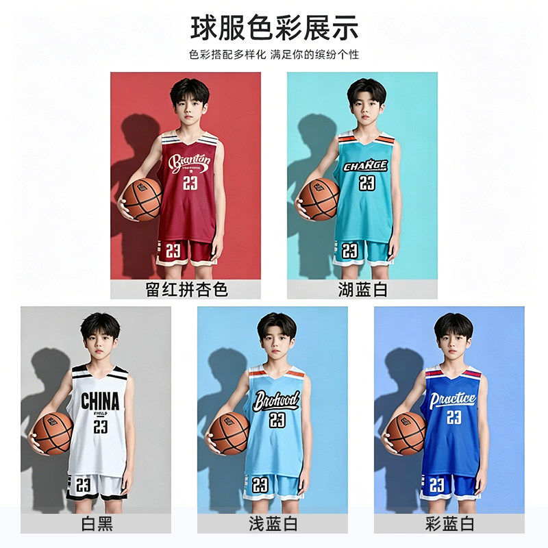 儿童双面篮球服套装男比赛队服定制小学生运动训练服背心美式球衣