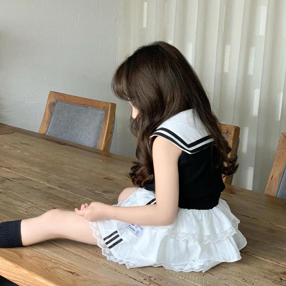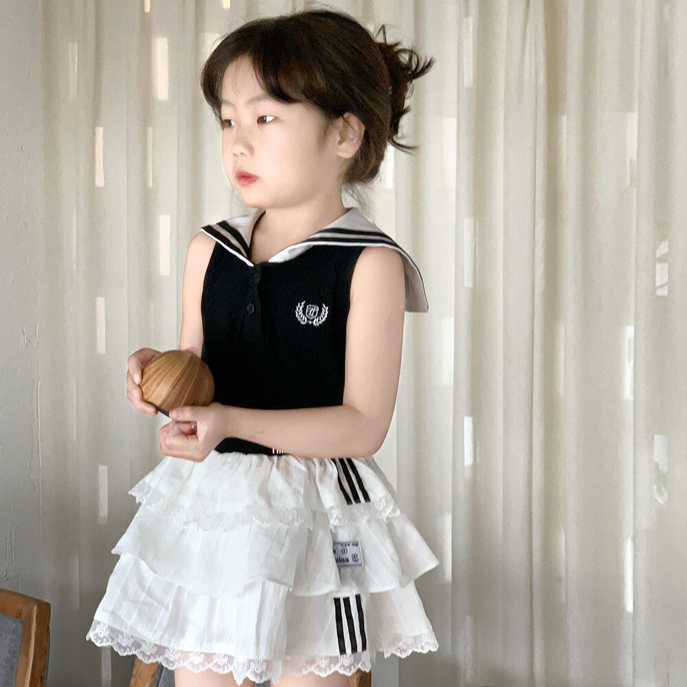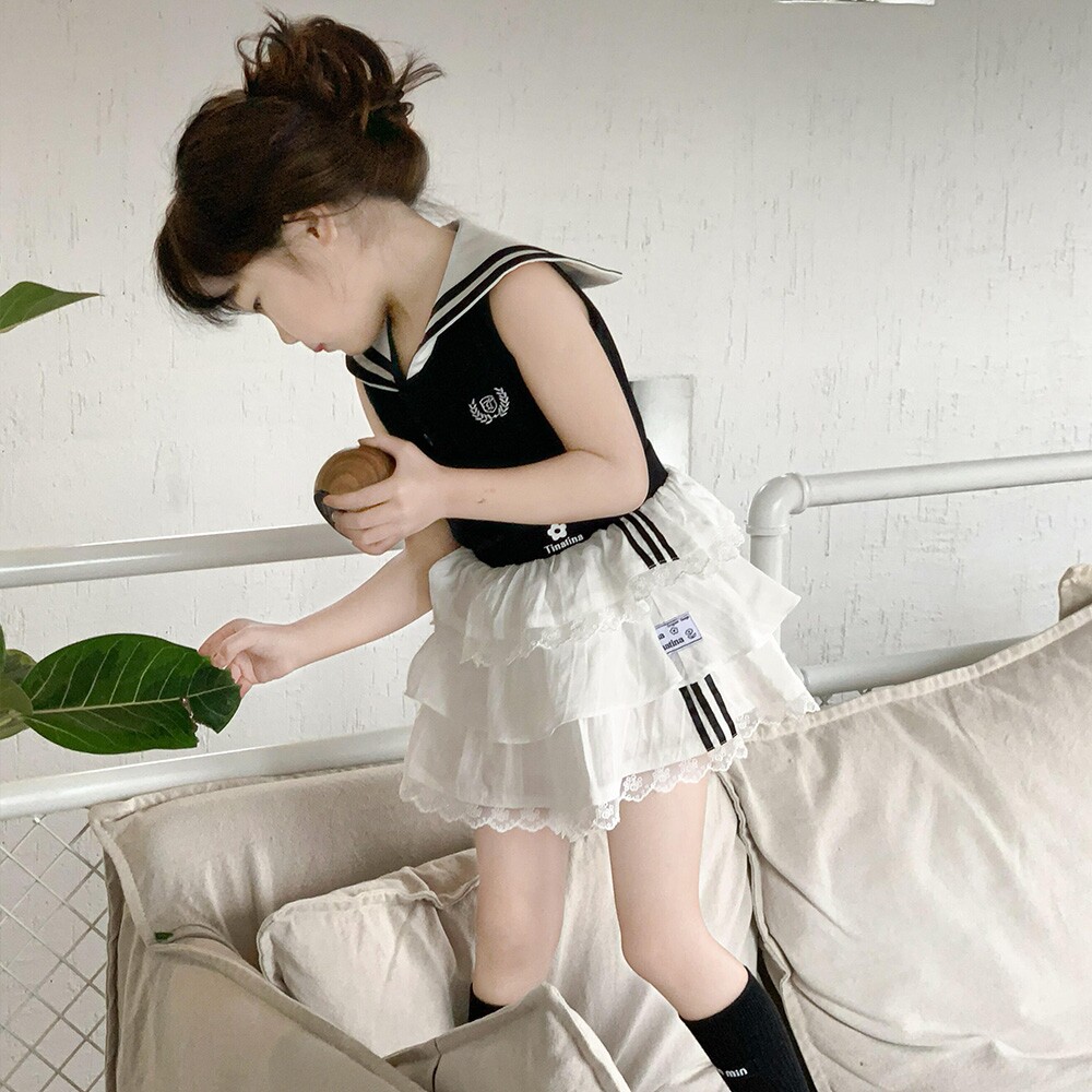 女童夏款套装2026夏季新款洋气海军领上衣T恤宝宝蛋糕短裙两件套