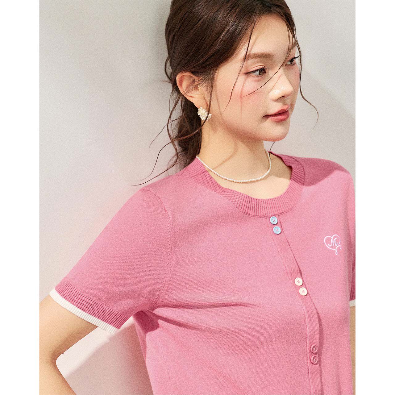 IEF/爱依服【微胖】大码女装套头毛针织衫2026夏新款短袖打底上衣