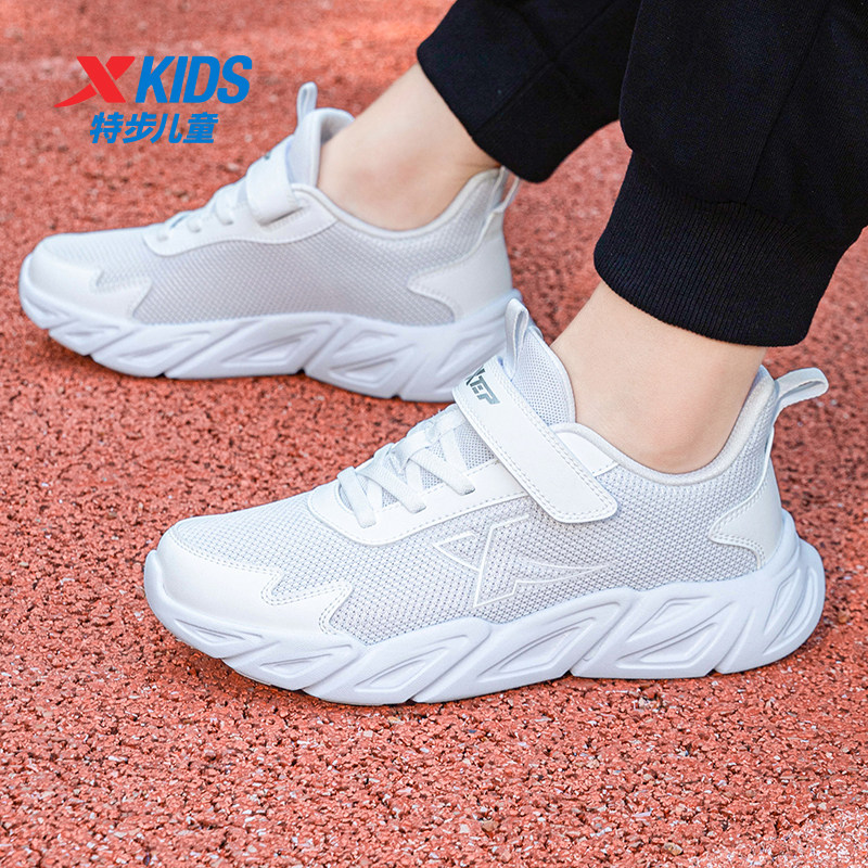 特步童鞋男童春季新款男孩网面白色运动鞋中大童跑步鞋小白鞋透气